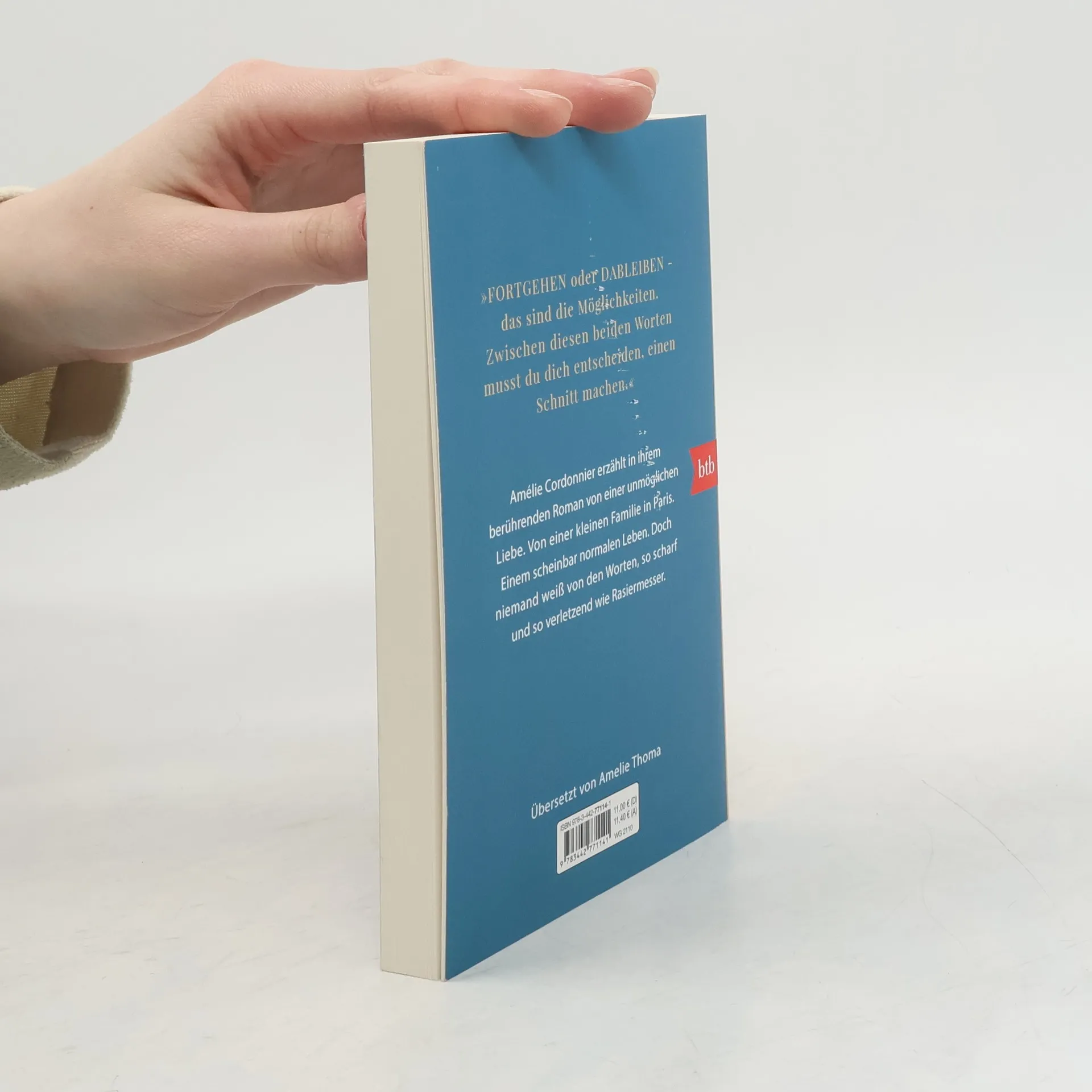 Eine kleine Familie in Paris. Ein scheinbar normales Leben. Sieben Jahre hat die Idylle gehalten. Aurélien hat versprochen, dass er sich ändert. Dann passiert es wieder - an einem Wochenende, das sie mit ihren beiden Kindern fern von Paris in der Normandie verbringen, in dem alten Ferienhaus von Auréliens Großtante. Worte, so scharf und so verletzend wie Rasiermesser. Sie weiß, dass ihm wenig später alles leidtut. Sie weiß, dass ihre Kinder ihren Vater brauchen. Und sie weiß zugleich, dass es so nicht weitergehen kann.