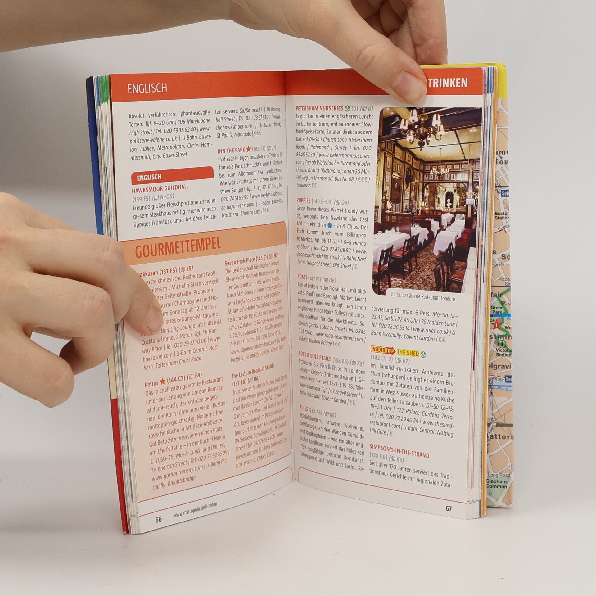 Kompakte Informationen, Insider-Tipps, Erlebnistouren und digitale Extras: Erleben Sie mit MARCO POLO die Metropole an der Themse intensiv vom Frühstück bis zum Nightcup. Mit dem MARCO POLO Reiseführer kommen Sie sofort in London an und wissen garantiert, „wohin zuerst“. Erfahren Sie, welche Highlights Sie neben dem Buckingham Palace und der Tower Bridge nicht verpassen dürfen, dass Sie in der Marylebone High Street trendige Designer finden und warum es sich lohnt, bei einer Pause in einer der grünen Oasen wie dem Regent’s Park zu entspannen. Die Insider-Tipps der Autorin lassen Sie London individuell und authentisch erleben und mit den Low-Budget-Tipps sparen Sie bares Geld. Erkunden Sie London in all seinen Facetten mit den maßgeschneiderten MARCO POLO Erlebnistouren. Das speziell dafür entwickelte Design sorgt - schon beim Lesen und umso mehr vor Ort - für größtmögliche Orientierung. Die kostenlose Touren-App führt Sie digital (und ohne Roaminggebühren) auf den besonderen Wegen der Erlebnistouren. Und Events& News mit aktuellen Veranstaltungen (Ausstellungen, Konzerten, Festivals, Sportevents...) für die nächsten 3 Monate, brandaktuellen Informationen zu den Printinhalten und zusätzlichen Insider-Tipps hält Sie immer auf dem neuesten Stand. In jedem Band gibt es einen übersichtlichen Cityatlas und eine herausnehmbare Faltkarte - in beide sind natürlich die Erlebnistouren eingetragen.