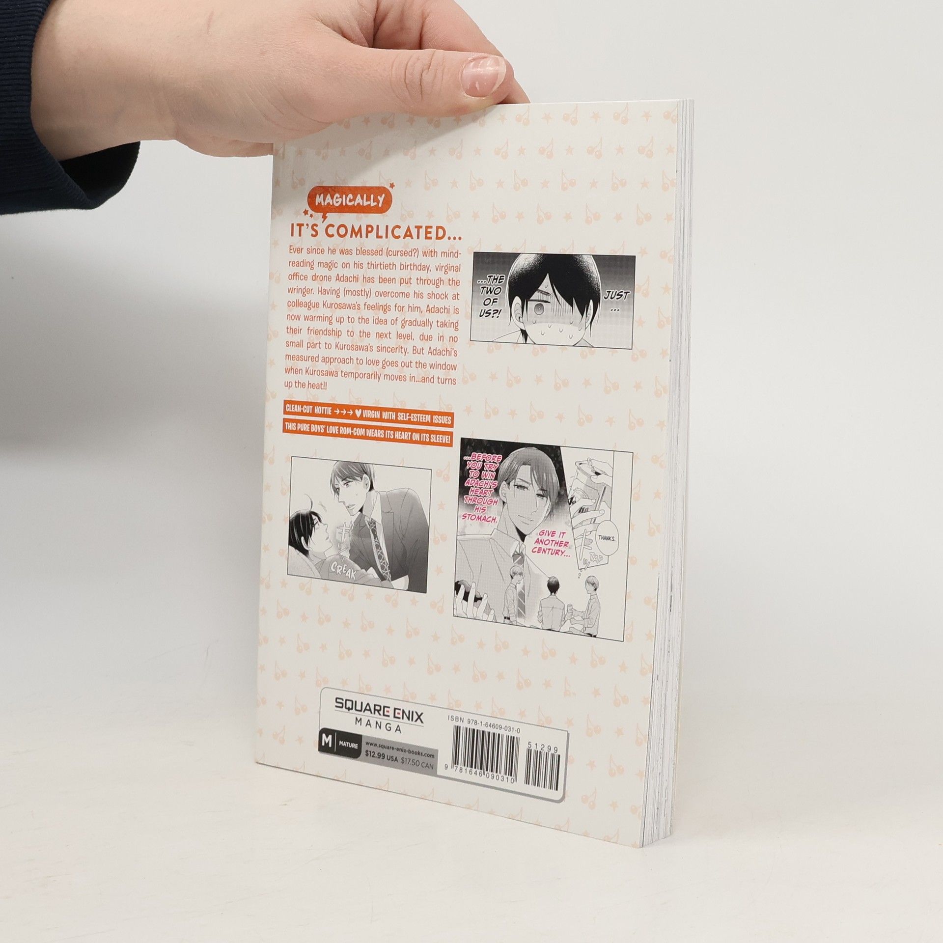 It's complicated: A thirty-year-old virgin gets more than he bargained for when his newfound magical power reveals he's the object of his male coworker's affections! Ever since he was blessed (cursed?) on his thirtieth birthday with the magical ability to read the minds of those he touches, virginal office drone Adachi has been put through the ringer, especially after discovering his colleague Kurosawa's feelings for him! And just when it seems like Adachi might be able to take his friendship with Kurosawa to the next level, Adachi's complex about not having any romantic experience gets in the way. Unfortunately for Adachi, taking things nice and slow is out the window when it turns out the two of them are going to be sharing an apartment!!