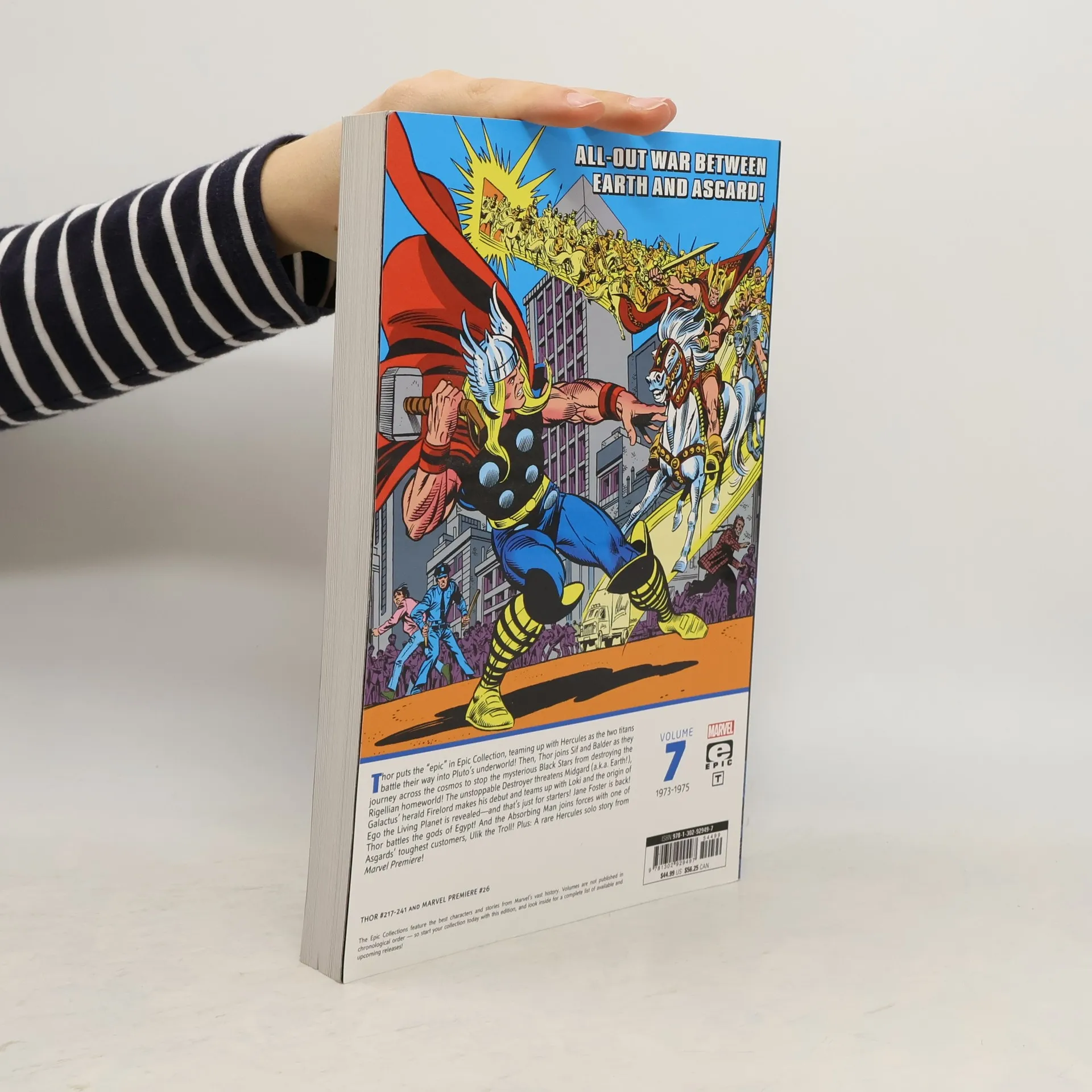 In volume 7 of the Thor epic collection, danger and action abound! Thor teams up with Hercules to battle into Pluto's underworld. Thor joins Sif and Balder to journey across the cosmos in order to stop the mysterious Black Stars. Thor battles the gods of Egypt. Thor must fight the Absorbing Man and Ulik the Troll, who have joined forces. Will Thor be able to take on all these rampaging villains and survive?