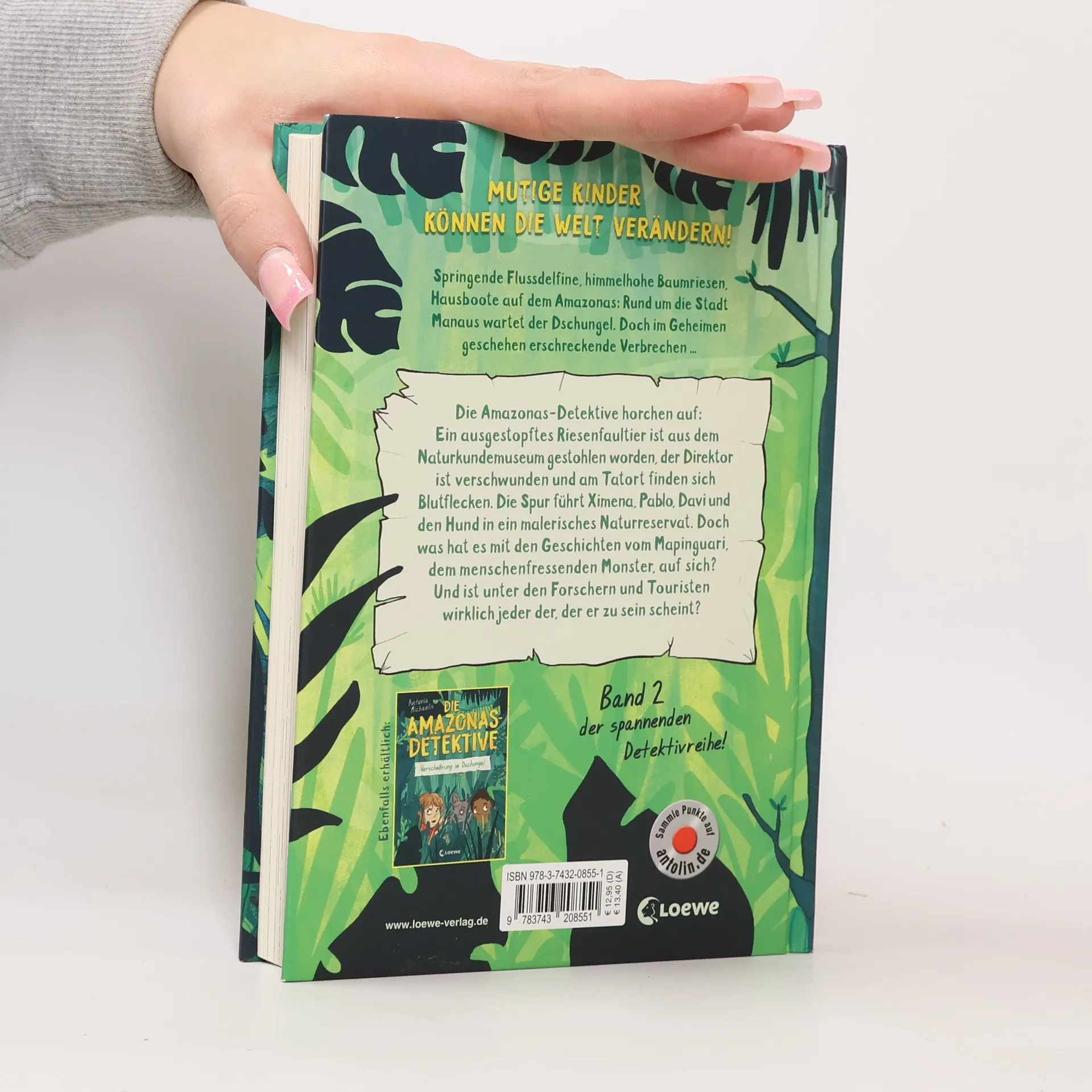 Mutige Kinder können die Welt verändern!Springende Flussdelfine, himmelhohe Baumriesen, Hausboote auf dem Amazonas: Rund um die Stadt Manaus wartet der Dschungel. Doch im Geheimen geschehen erschreckende Verbrechen …Die Amazonas-Detektive horchen auf: Ein ausgestopftes Riesenfaultier ist aus dem Naturkundemuseum gestohlen worden, der Direktor ist verschwunden und am Tatort entdecken sie Blutflecken. Die Spur führt Ximena, Pablo, Davi und den Hund in ein malerisches Naturreservat. Was hat es auf sich mit den Geschichten vom Mapinguari, dem menschenfressenden Monster, das angeblich eine Art Riesenfaultier war? Und ist unter den Forschern und Touristen wirklich jeder der, der er zu sein scheint?Band 2 der spannenden Detektivreihe!Tief im dichten brasilianischen Dschungel wartet der zweite Kriminalfall auf die Amazonas-Detektive. Eine spannende und unterhaltsame Detektiv-Reihe mit starker Umweltthematik für Jungs und Mädchen ab 9 Jahren rund um Klimaschutz, Umweltzerstörung, Kulturen, Brasilien, Regenwald und die Natur. Großartig erzählt von der unvergleichlichen Antonia Michaelis und mit coolen Schwarz-Weiß-Illustrationen von Sonja Kurzbach. Für Fans von Kirsten Boie und Annelies Schwarz.
