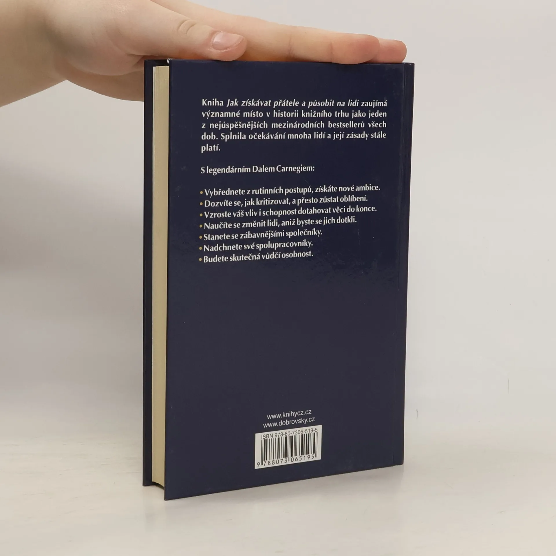 Kniha Jak získávat přátele a působit na lidi zaujímá významné místo v historii knižního trhu jako jeden z nejúspěšnějších mezinárodních bestsellerů všech dob. Splnila očekávání mnoha lidí a její zásady stále platí. S legendárním Dalem Carnegiem vybřednete z rutinních postupů a získáte nové ambice. Dozvíte se, jak kritizovat a přesto zůstat oblíbení. Vzroste váš vliv i schopnost dotahovat věci do konce. Stanete se zábavnějšími společníky. Nadchnete své spolupracovníky. Budete skutečná vůdčí osobnost.