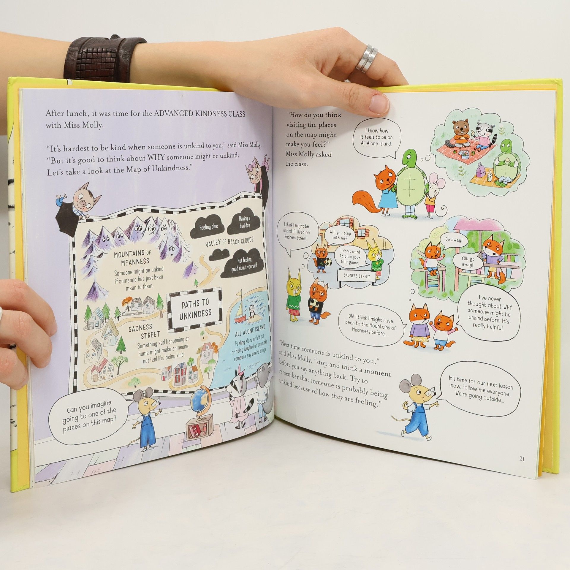 At Miss Molly's School of Kindness, three naughty fox cubs find out how to be kind to others, kind to themselves, and the importance of being kind to the planet. A perfect way to start conversations with children about kindness, with humour, a fun story, and a cast of lively animal characters.