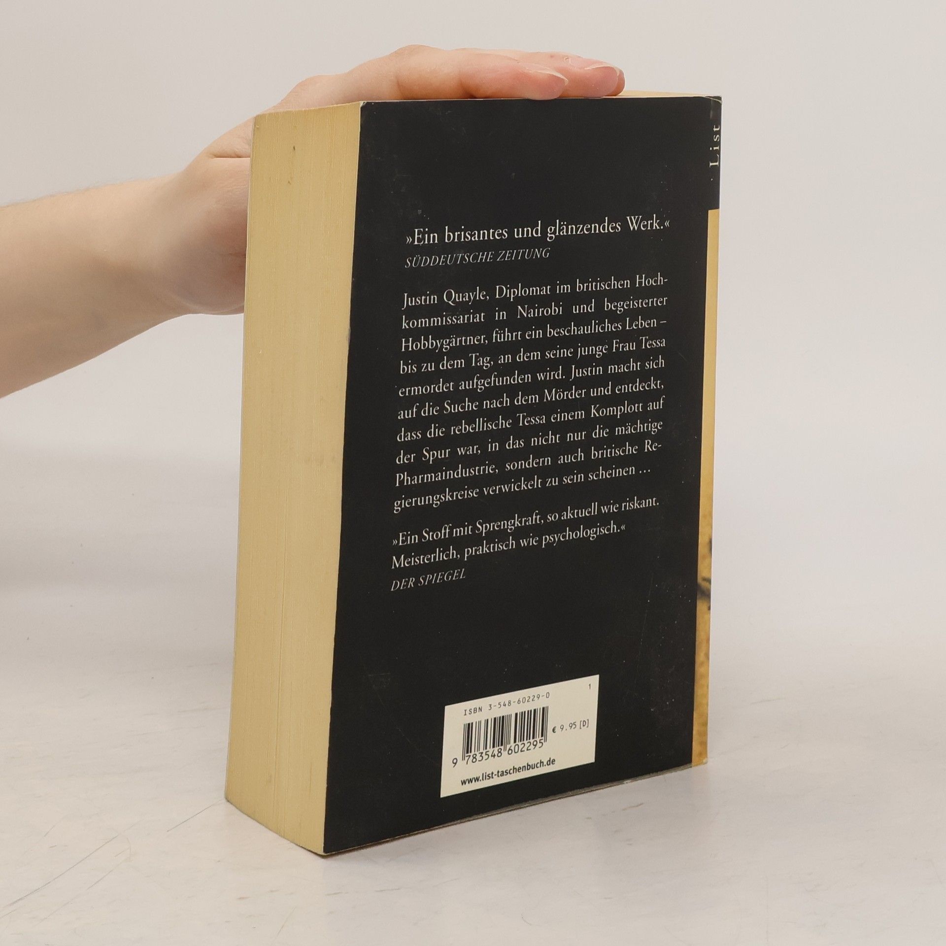 Justin Quayle, Diplomat im britischen Hochkommissariat in Nairobi, ist begeisterter Hobbygärtner ? bis zu dem Tag, an dem seine junge Frau Tessa ermordet aufgefunden wird. Justin macht sich auf die Suche nach dem Mörder und entdeckt, dass die rebellische Tessa einem Komplott auf der Spur war, in das nicht nur die mächtige Pharmaindustrie, sondern auch britische Regierungskreise verwickelt zu sein scheinen. Doch erst im Laufe seiner zunehmend brisanten Nachforschungen wird ihm klar, wie wenig er die Frau, die er zu lieben glaubte, wirklich kannte und wie viel er ihr schuldig geblieben ist.