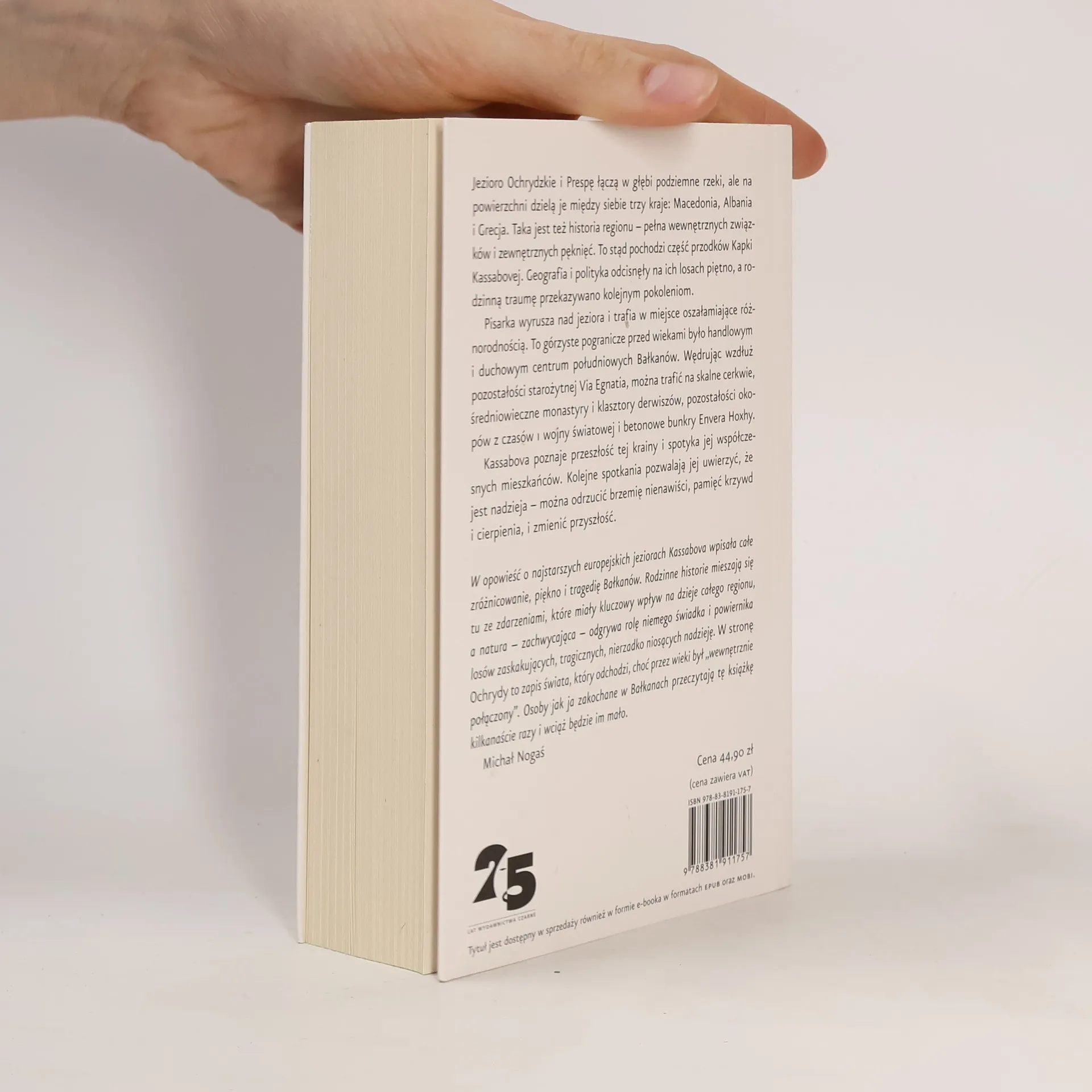 Jezioro Ochrydzkie i Prespę łączą w głębi podziemne rzeki, ale na powierzchni dzielą je między siebie trzy kraje: Macedonia, Albania i Grecja. Taka jest też historia regionu pełna wewnętrznych związków i zewnętrznych pęknięć. To stąd pochodzi część przodków Kapki Kassabovej. Geografia i polityka odcisnęły na ich losach piętno, a rodzinną traumę przekazywano kolejnym pokoleniom. Pisarka wyrusza nad jeziora, by zrozumieć dzieje rodziny i uwolnić się od przytłaczającego dziedzictwa. Trafia w miejsce oszałamiające różnorodnością. To górzyste pogranicze przed wiekami było handlowym i duchowym centrum południowych Bałkanów. Wędrując wzdłuż pozostałości starożytnej Via Egnatia, można trafić na skalne cerkwie, średniowieczne monastyry i klasztory derwiszów, pozostałości okopów z czasów I wojny światowej i betonowe bunkry Envera Hoxhy. Nad wodą krążą pelikany i kormorany. Kassabova poznaje przeszłość tej krainy i spotyka jej współczesnych mieszkańców: poetów i rybaków, duchownych i odmieńców, uciekinierów i wygnańców. Kolejne spotkania pozwalają jej uwierzyć, że jest nadzieja można odrzucić brzmię nienawiści, pamięć krzywd i cierpienia, i zmienić przyszłość.