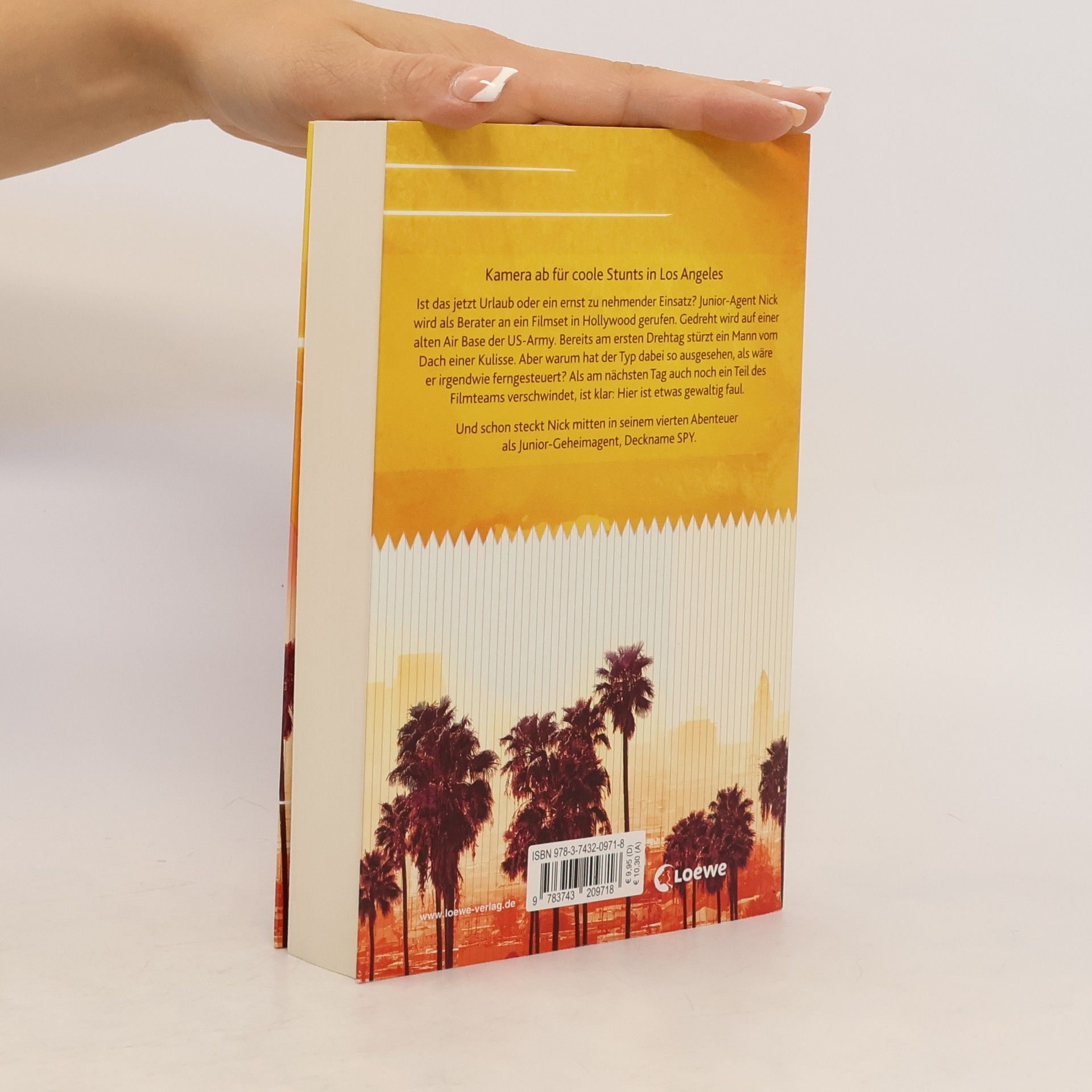 Kamera ab für coole Stunts in Los Angeles Ist das jetzt Urlaub oder ein ernstzunehmender Einsatz? Junior-Agent Nick wird als Berater an ein Filmset in Hollywood gerufen. Gedreht wird auf einer alten Air Base der US-Army. Bereits am ersten Drehtag stürzt ein Mann vom Dach einer Kulisse. Aber warum hat der Typ dabei so ausgesehen, als wäre er irgendwie ferngesteuert? Als am nächsten Tag fast das ganze Filmteam verschwindet, ist klar: Hier ist etwas gewaltig faul. Und schon steckt Nick mitten in seinem vierten Abenteuer als Junior-Geheimagent, Deckname SPY. Im neuen Teil der Abenteuer-Reihe schicken Bestsellerautor Arno Strobel und Nina Scheweling Nick zu seinem nächsten Auftrag nach Hollywood . Ein turboschnelles, actionreiches Abenteuer und ideales Lesefutter für Jungen und Mädchen .