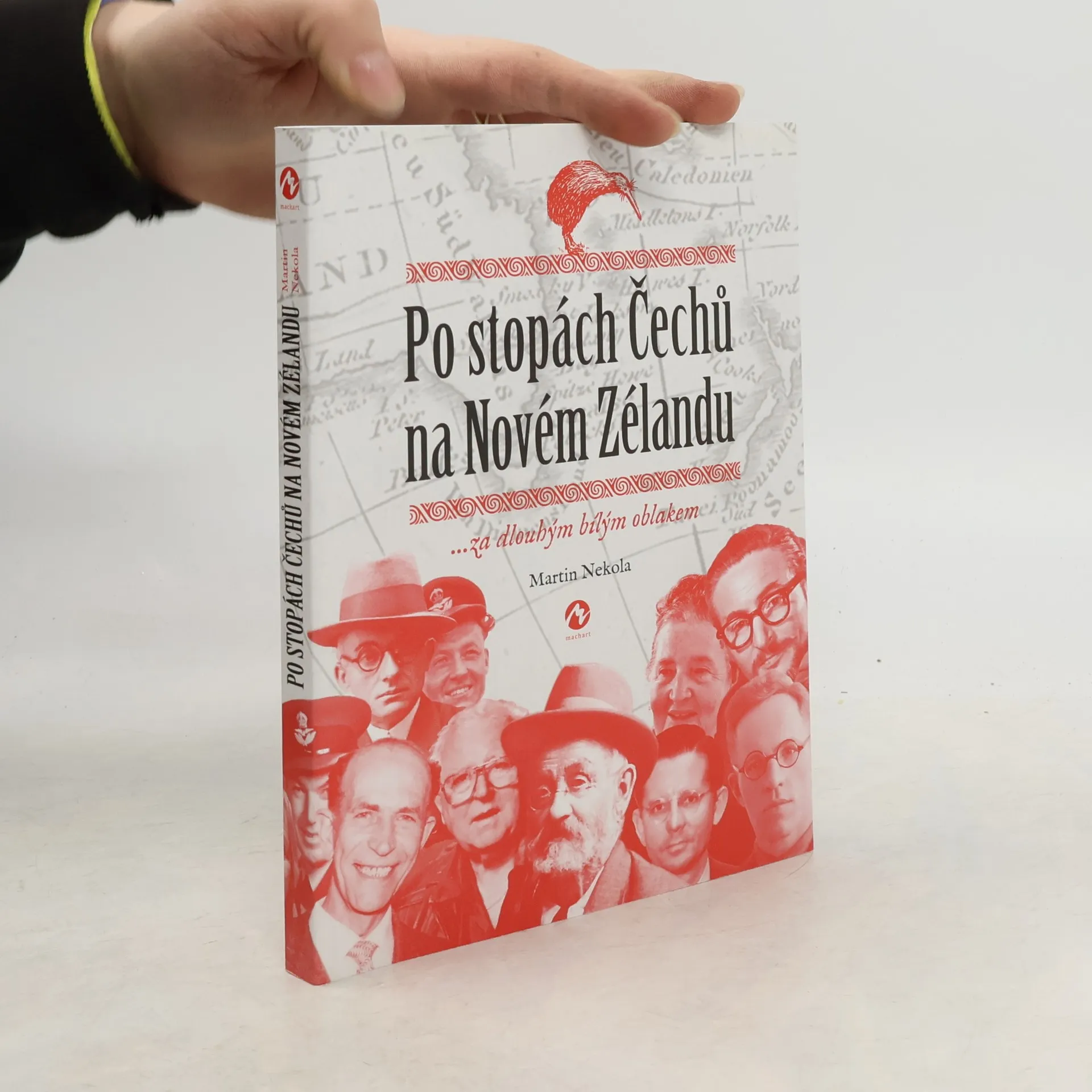 Autor Martin Nekola je historik, který se mnoho let věnuje výzkumu krajanských komunit v zahraničí. Ve své poslední knize se zaměřuje na málo probádané, ale fascinující téma Čechů na Novém Zélandu. V různých obdobích a z různých důvodů se vydávali našinci na opačný konec světa, aby zde nalezli nový domov. Dobrodruzi na přelomu 19. a 20. století, židé prchající před Hitlerem, exulanti po komunistickém převratu v únoru 1948 i po okupaci Československa v srpnu 1968. Kniha čtenáře přenese do nejznámější novozélandské vesnice Puhoi, založené přistěhovalci z Plzeňska, představí zajímavé osobnosti, které se v zemi dlouhého bílého oblaku prosadily v široké škále oborů, i umělce, kteří svou tvorbou významně ovlivnili novozélandskou kulturu a společnost. Stačí zmínit malíře Bohumíra Lindauera, architekty Heinricha Kulku, Maxe Rosenfelda a Vladimíra Čačalu, zakladatele wellingtonské opery Bedřicha Turnovského, uměleckého hrnčíře Miroslava Smíška a mnohé další. Kniha připomene i baťovce, restauratéry a podnikatele, české krajanské spolky a tiskoviny, státní návštěvu Václava Havla na jaře 1995 a samozřejmě nevynechá ani aktuální pohled mezi novozélandské Čechy. Obsahuje stovky unikátních a dosud nikdy nepublikovaných fotografií a dobových fragmentů, jakož i výňatky ze vzpomínek a dopisů přistěhovalců.