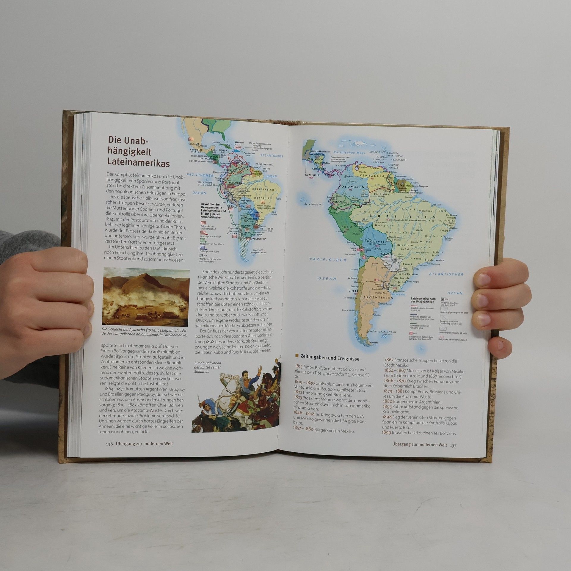 Dieses umfassende Nachschlagewerk enthält die wichtigsten Etappen der Geschichte – von den ersten Menschen über die Entwicklung der Schrift, die Kreuzzüge, Entdeckungen und Erfindungen bis zu den Revolutionen, den Weltkriegen und aktuellen Ereignissen des 21. Jahrhunderts. Mehr als 160 Karten und zahlreiche Zeittafeln sowie farbige Abbildungen veranschaulichen die historische Entwicklung.