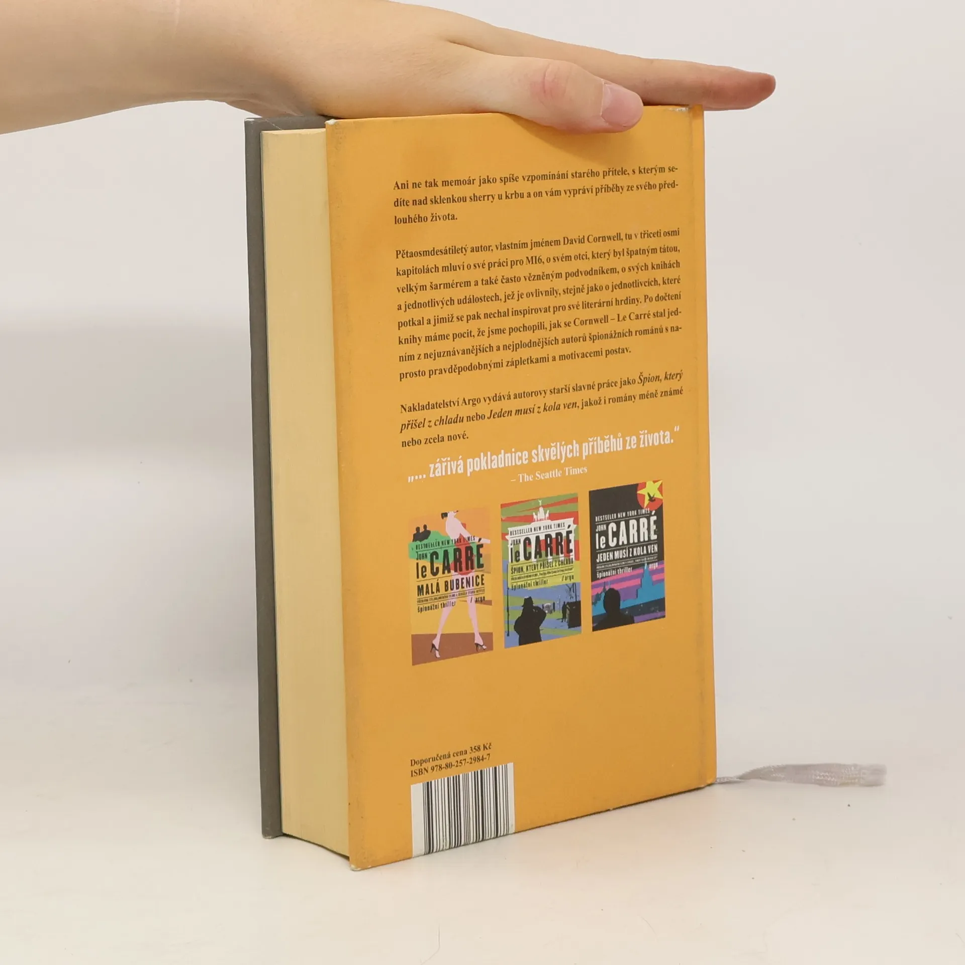 Ani ne tak memoár jako spíše vzpomínání starého přítele, s kterým sedíte nad sklenkou sherry u krbu, a on vám vypráví příběhy ze svého předlouhého života. Pětaosmdesátiletý autor, vlastním jménem David Cornwell, tu v třiceti osmi kapitolách mluví o své práci pro MI6, o svém otci, který byl špatným tátou, velkým šarmérem a také často vězněným podvodníkem, o svých knihách a jednotlivých událostech, jež je ovlivnily, stejně jako o jednotlivcích, které potkal a jimiž se pak nechal inspirovat pro své literární hrdiny. Po dočtení knihy máme pocit, že jsme pochopili, jak se Cornwell – Le Carré stal jedním z nejuznávanějších a nejplodnějších autorů špionážních románů s naprosto pravděpodobnými zápletkami a motivacemi postav. „… zářivá pokladnice skvělých příběhů ze života.“ – The Seattle Times