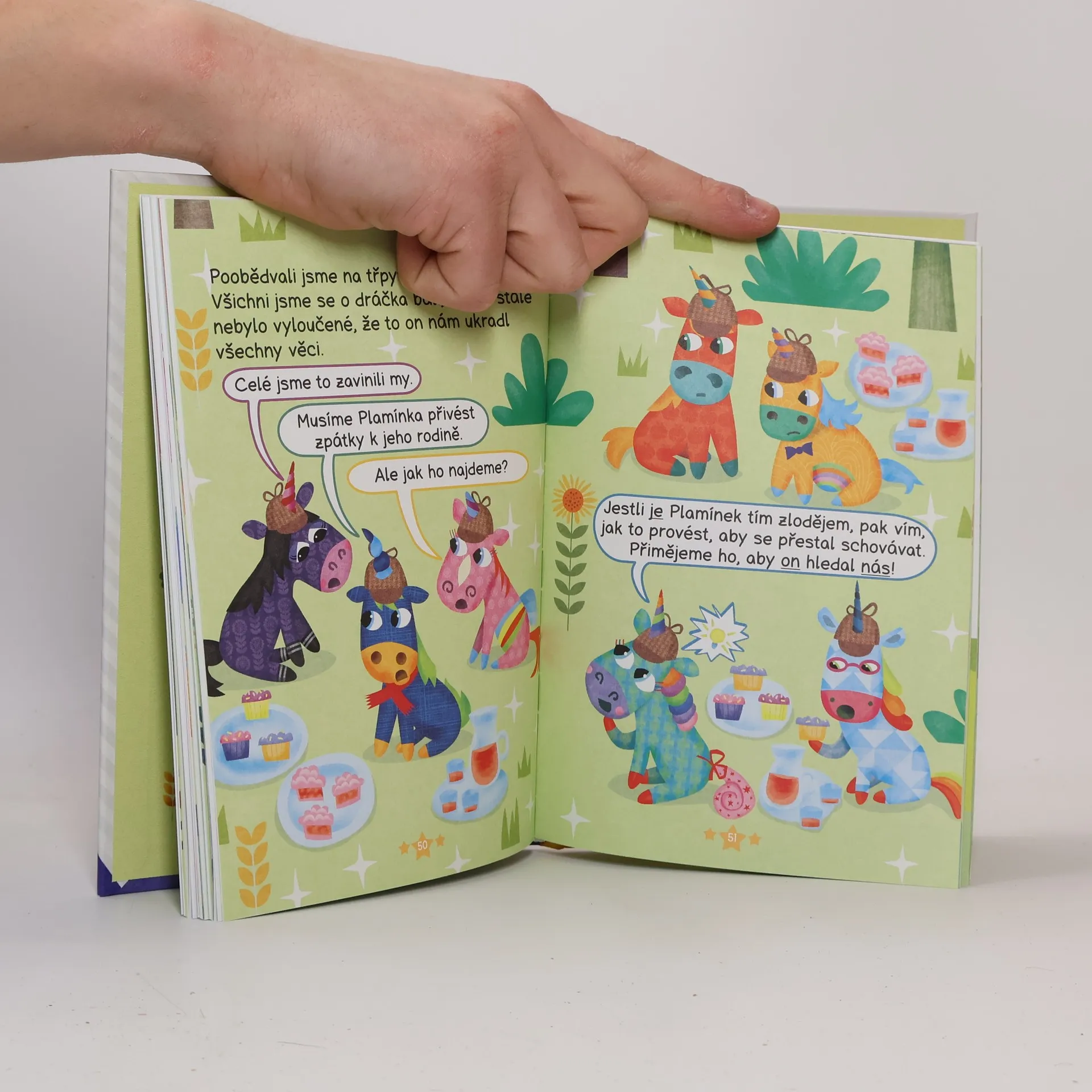 Duháček třpytivý ocásek ještě nikdy neviděl žádného draka. Ale když se v Jiskřivém háječku začnou ztrácet věci, všechny stopy vedou k dračím jeskyním! Bude Duháček čelit strašlivému drakovi, nebo najde nového kamaráda?