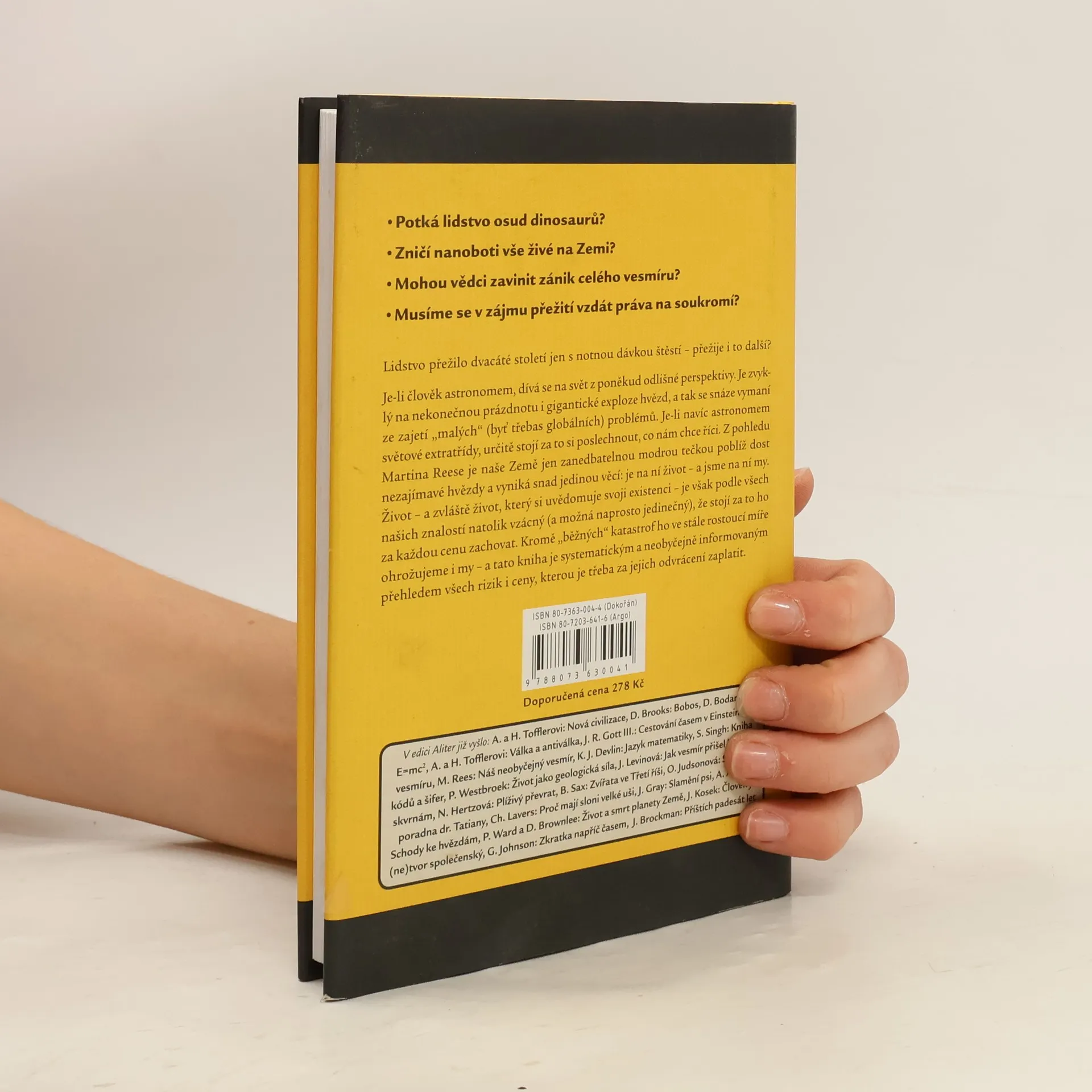 Přežije lidstvo svůj úspěch? Martin Rees předpovídá, že šance, že by lidský druh přežil konec 21. století, nejsou větší než padesát procent. Věda sice rozjařeně postupuje stále vpřed, ale kromě nesporných přínosů vytváří i rizika, proti nimž jsou ty nejkatastrofičtější noční můry zábavným povyražením. Rozvoj technologií, které stále více ohrožují světové životní prostředí, může ve výsledku znamenat větší riziko než zemětřesení, výbuchy sopek či dopady vesmírných těles na zemský povrch. Osud naší planety je v rámci celého univerza doslova symbolický a záleží jen na lidech a na tom, jak se v tomto století budou chovat. Originální název: Our Final Hour: A Scientist's Warning: How Terror, Error, and Environmental Disaster Threaten Humankind's Future In This Century—On Earth and Beyond
