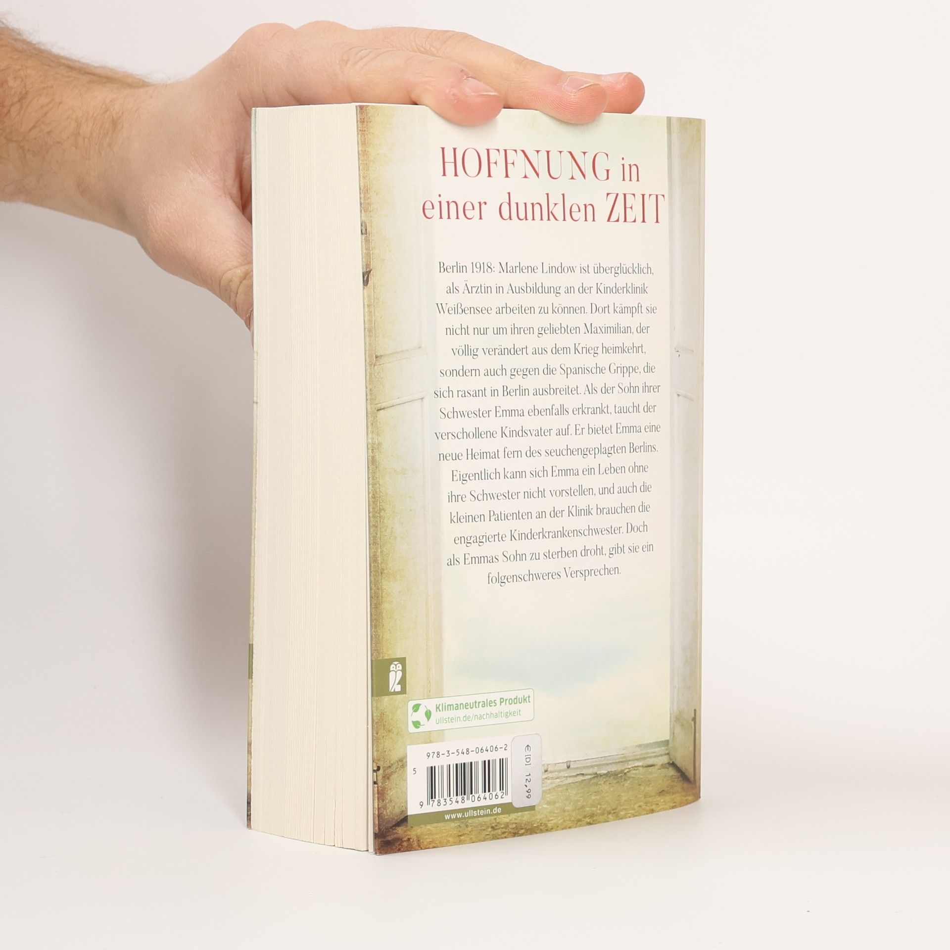 Berlin 1918: Marlene Lindow ist glücklich, nach ihrem Medizin-Studium wieder in der Kinderklinik Weißensee arbeiten zu können. Die meisten Ärzte wurden in Lazarette befohlen, so dass sie die kleinen Patienten oft allein behandeln muss. Fortan kämpft sie nicht nur um ihren geliebten Maximilian, der völlig verändert aus dem Krieg heimkehrt, sondern auch gegen die Spanische Grippe, die sich rasant in Berlin ausbreitet. Als der Sohn ihrer Schwester Emma ebenfalls erkrankt, taucht der verschollene Kindsvater auf. Er bietet Emma eine neue Heimat fern des seuchengeplagten Berlins, wo ihr Sohn unbeschwert aufwachsen kann. Marlene kann sich allerdings ein Leben ohne Emma nicht vorstellen. Und auch die kranken Kinder in der Klinik brauchen die engagierte Kinderkrankenschwester. Wie wird sie sich entscheiden?