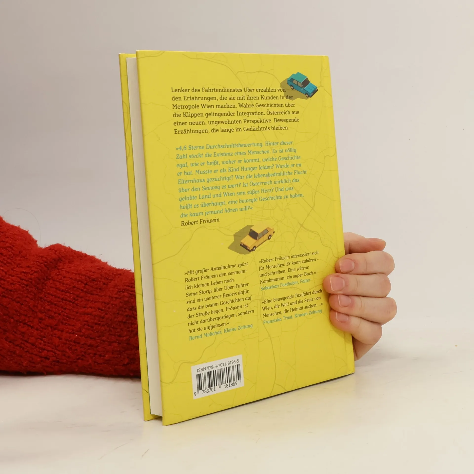 Robert Fröwein erzählt von den Erfahrungen, die Lenker des Fahrtendienstes Uber mit ihren Kunden in der Metropole Wien machen. In zufälligen, anonymen und oft unvorhersehbaren Begegnungen erfahren wir, was sich hinter den Menschen aus Bosnien, Bulgarien, Afghanistan, Ägypten oder einfach dem Nachbarbezirk verbirgt – und lernen dabei auch viel über Österreich, eine Gesellschaft, die während der Pandemie um ihre Offenheit ringt. 4,6 Sterne Durchschnittsbewertung. Hinter diesen Zahlen steht die Existenz eines ganzen Menschen. Musste er als Kind Hunger leiden? Wurde er im Elternhaus geschlagen? War die lebensbedrohliche Flucht richtig? Ist Österreich das gelobte Land und Wien sein süßes Herz? Und was heißt es, eine bewegte Geschichte zu haben, wenn sie niemand hören will? Die Fahrer berichten von der kleinen Freiheit, sich unter prekären Lebensverhältnissen bei 12-Stunden-Schichten wenigstens die Arbeitszeit aussuchen zu können. Und von der großen, sich in ihrer neuen Heimat endlich frei bewegen zu dürfen.