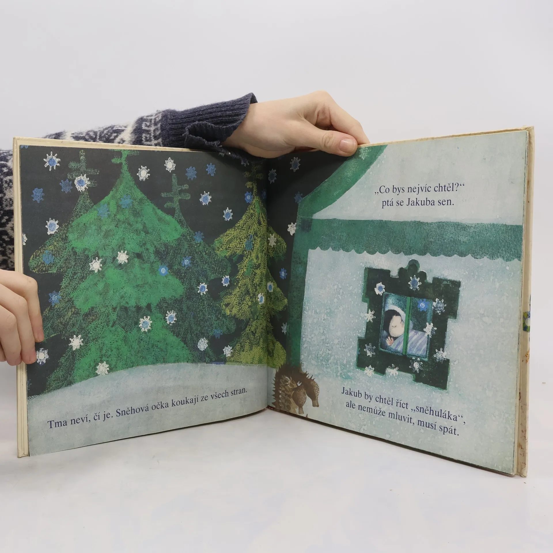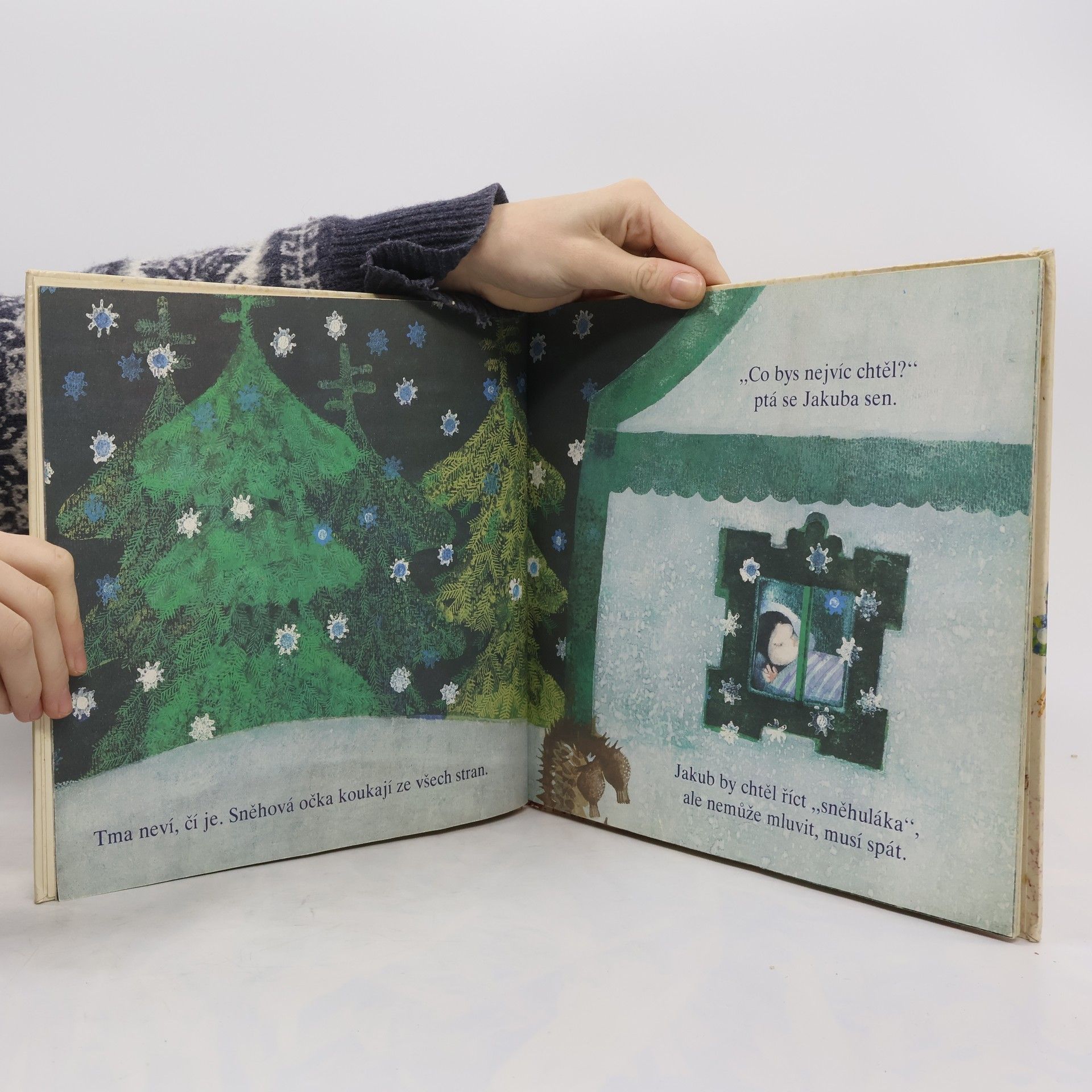 Obrázková kniha se snaží oslovit nejmenší děti ve věku od tří let. Fabuli příběhu, inspirovanou zážitky ze zasněžených zimních dnů a nocí, ukryla spisovatelka do několika motivů ztvárněných lyrizujícími jazykovými prostředky. Tak se autorce podařilo vnést do textu pravou atmosféru příchodu třpytivých vloček, jež vítají děti na prvních stránkách knihy a stávají se tak počátečním impulzem vedoucím ke kontaktu čtenářů s prostředím děje a hlavním hrdinou předškolákem Jakubem.