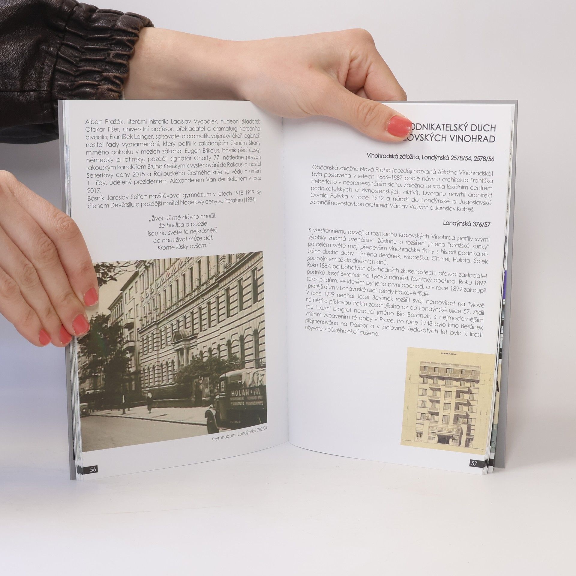 Kniha je uspořádána do kapitol o jednotlivých stavbách. Autor se zmiňuje o okolnostech vzniku objektů, o osobnostech stavitelů a architektů. Přibližuje konstrukci domů a upozorňuje na zajímavé architektonické detaily. Poslední oddíl nastiňuje atmosféru ulice a čtvrti, jsou zde připomenuty místní instituce a významné osobnosti z minulosti i ze současnosti. Svazek uzavírá vzpomínka spolubojovníků na účast architekta Václava Kopeckého v Pražském povstání 1945.