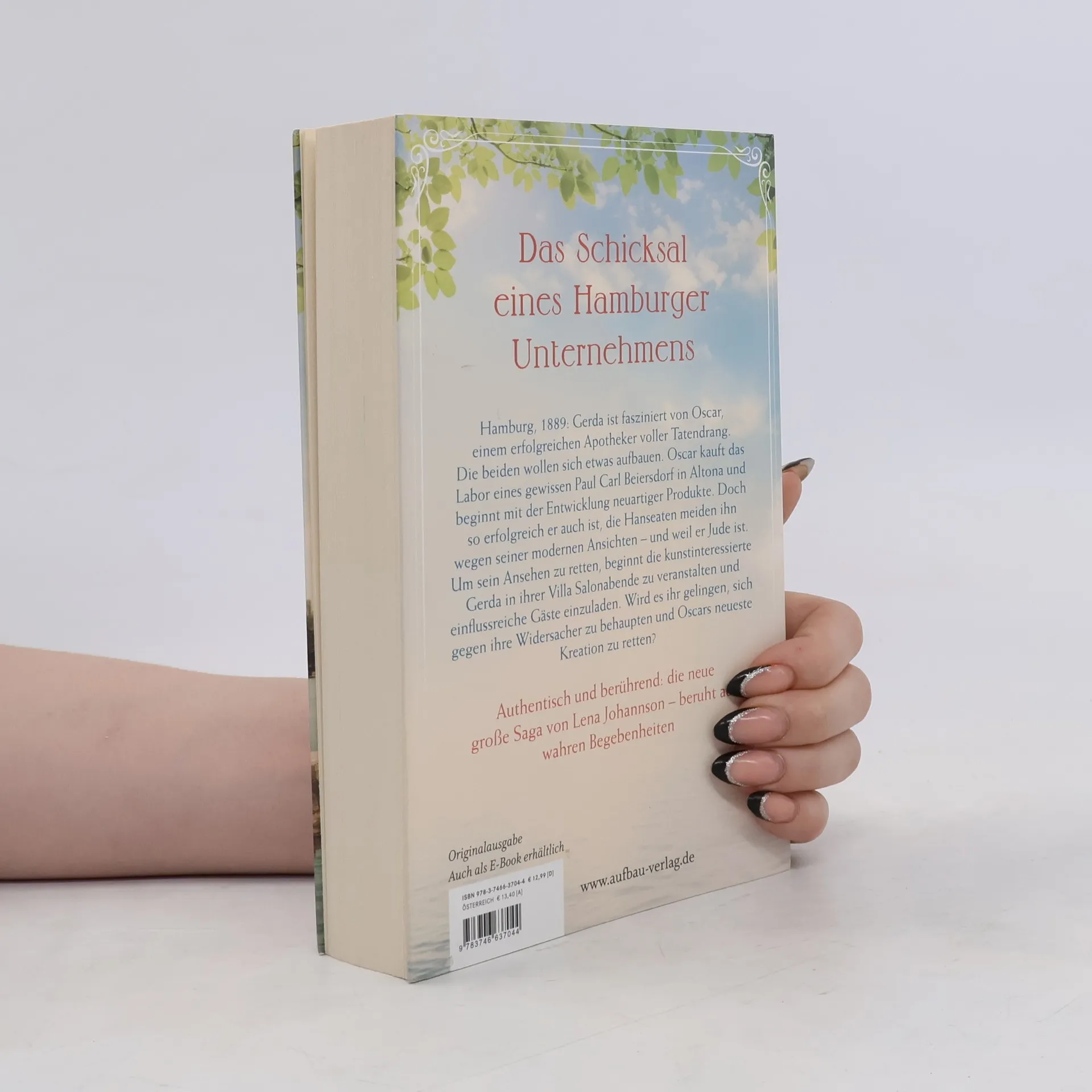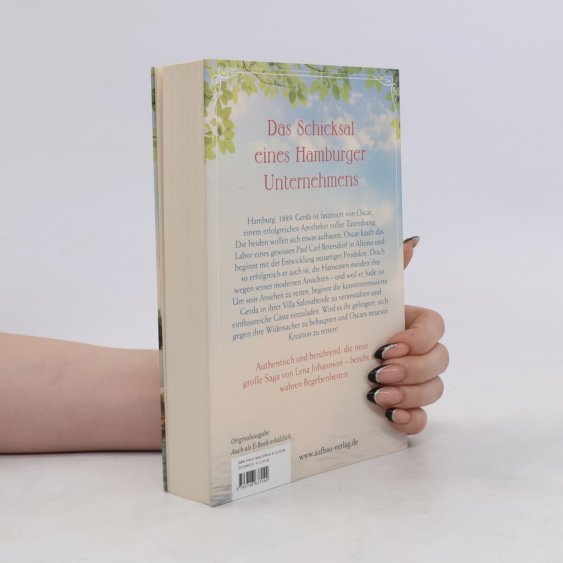 Das Schicksal eines Hamburger Unternehmens. Hamburg, 1889: Gerda ist fasziniert von Oscar, einem erfolgreichen Apotheker voller Tatendrang. Die beiden wollen sich etwas aufbauen. Oscar kauft das Labor eines gewissen Paul Carl Beiersdorf in Altona und beginnt mit der Entwicklung neuartiger Produkte. Doch so erfolgreich er auch ist, die Hanseaten meiden ihn wegen seiner modernen Ansichten – und weil er Jude ist. Um sein Ansehen zu retten, beginnt die kunstinteressierte Gerda in ihrer Villa Salonabende zu veranstalten und einflussreiche Gäste einzuladen. Wird es ihr gelingen, sich gegen ihre Widersacher zu behaupten und Oscars neueste Kreation zu retten? Authentisch und berührend: die neue große Saga von Lena Johannson – beruht auf wahren Begebenheiten