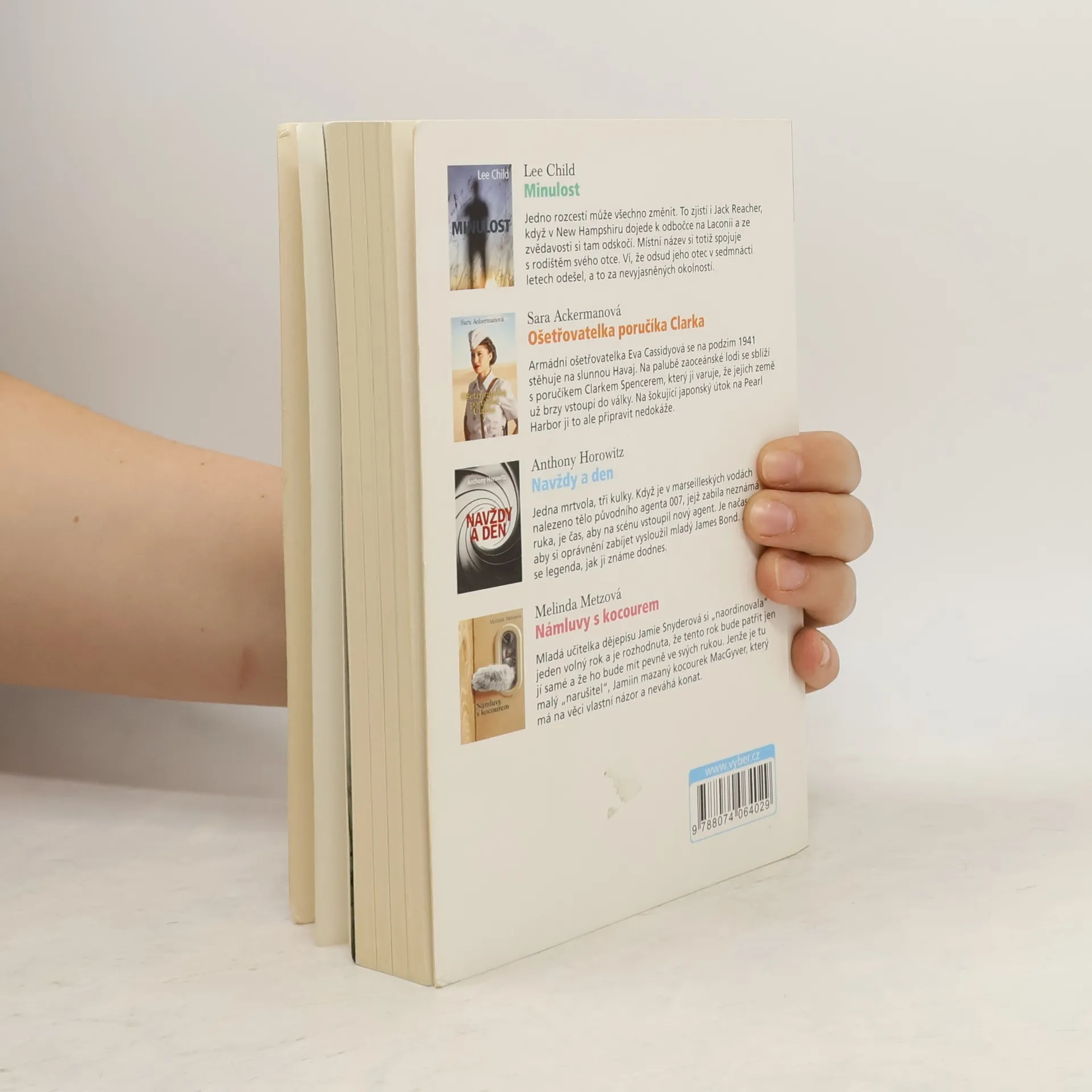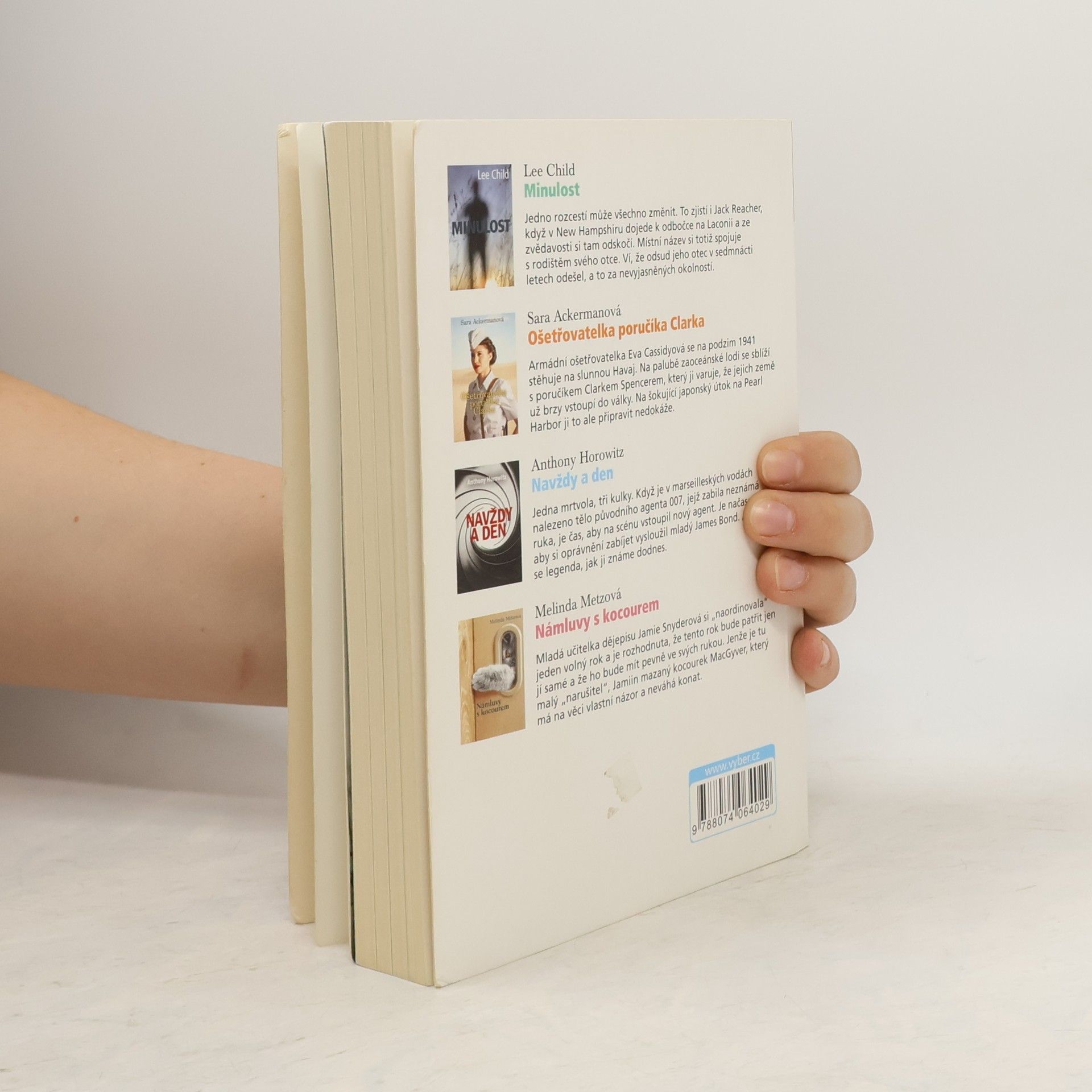 Minulost: Další thriller s hrdinou Jackem Reacherem, tentokrát pátrá po minulosti svého otce. Ošetřovatelka poručíka Clarka : Armádní ošetřovatelka Eva Cassidyová se ocitá na Havaji těsně před útokem na Pearl Harbor. Navždy a den : Zabili agenta 007! Ať žije nový agent 007! Námluvy s kocourem : Jak kocour MacGyver pomáhal své paničce ke štěstí...