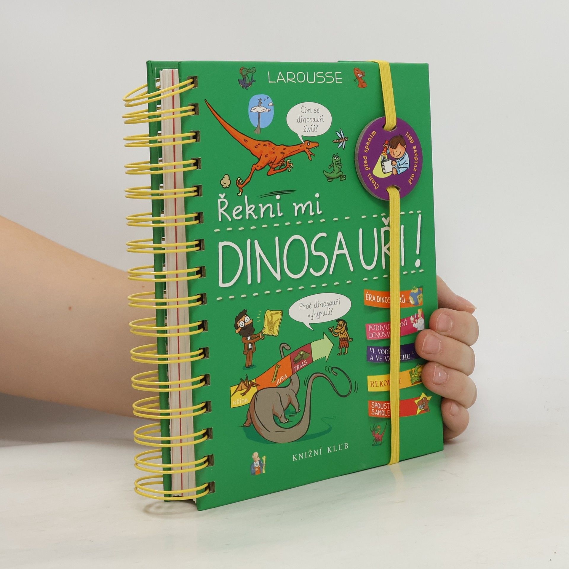 Další z oblíbených encyklopedií pro zvídavé děti z edice „Řekni mi“ se věnuje éře dinosaurů. Z odpovědí na více než 200 přemýšlivých otázek se děti dozvídají spoustu zajímavostí o období druhohor, kdy naši planetu pravěcí obři obývali, o životě na souši, ve vodě i ve vzduchu, o rekordech ze světa dinosaurů, o jejich druhové rozmanitosti, vzhledu, způsobu života, a konečně i o důvodech jejich vyhynutí. Knížka s praktickou spirálovou vazbou jako obvykle nabízí půvabné a vtipné ilustrace a nechybí ani tři listy se samolepkami.