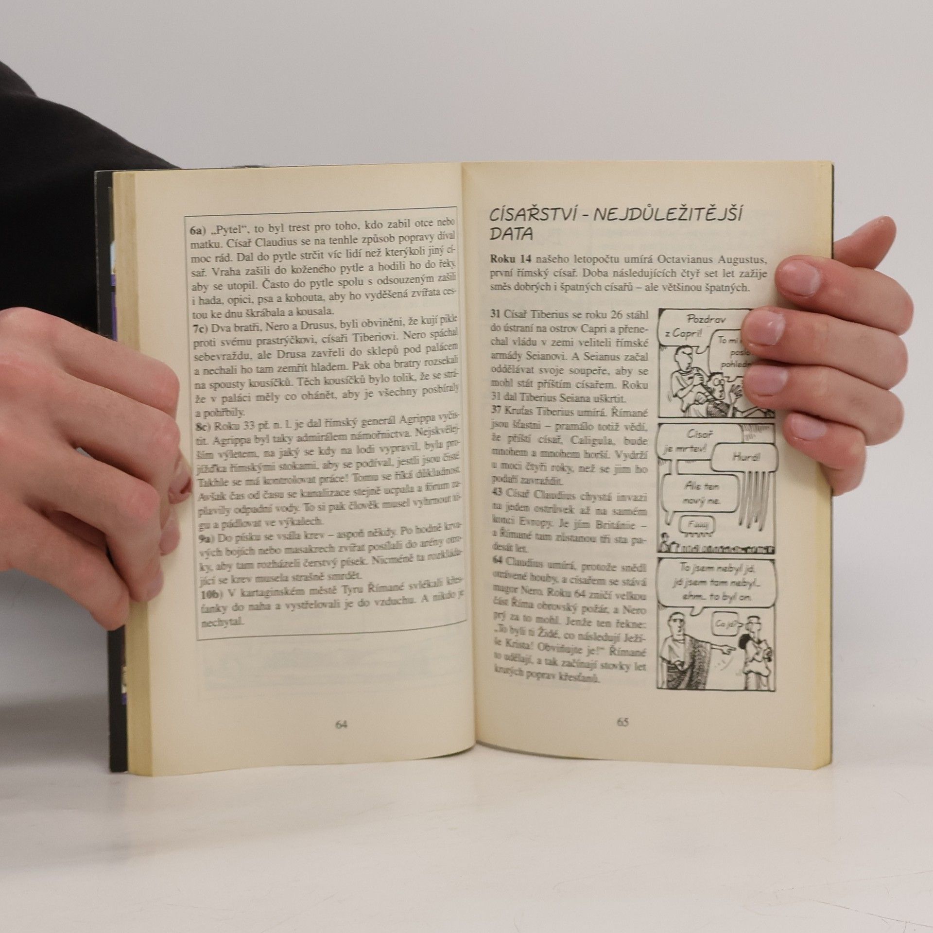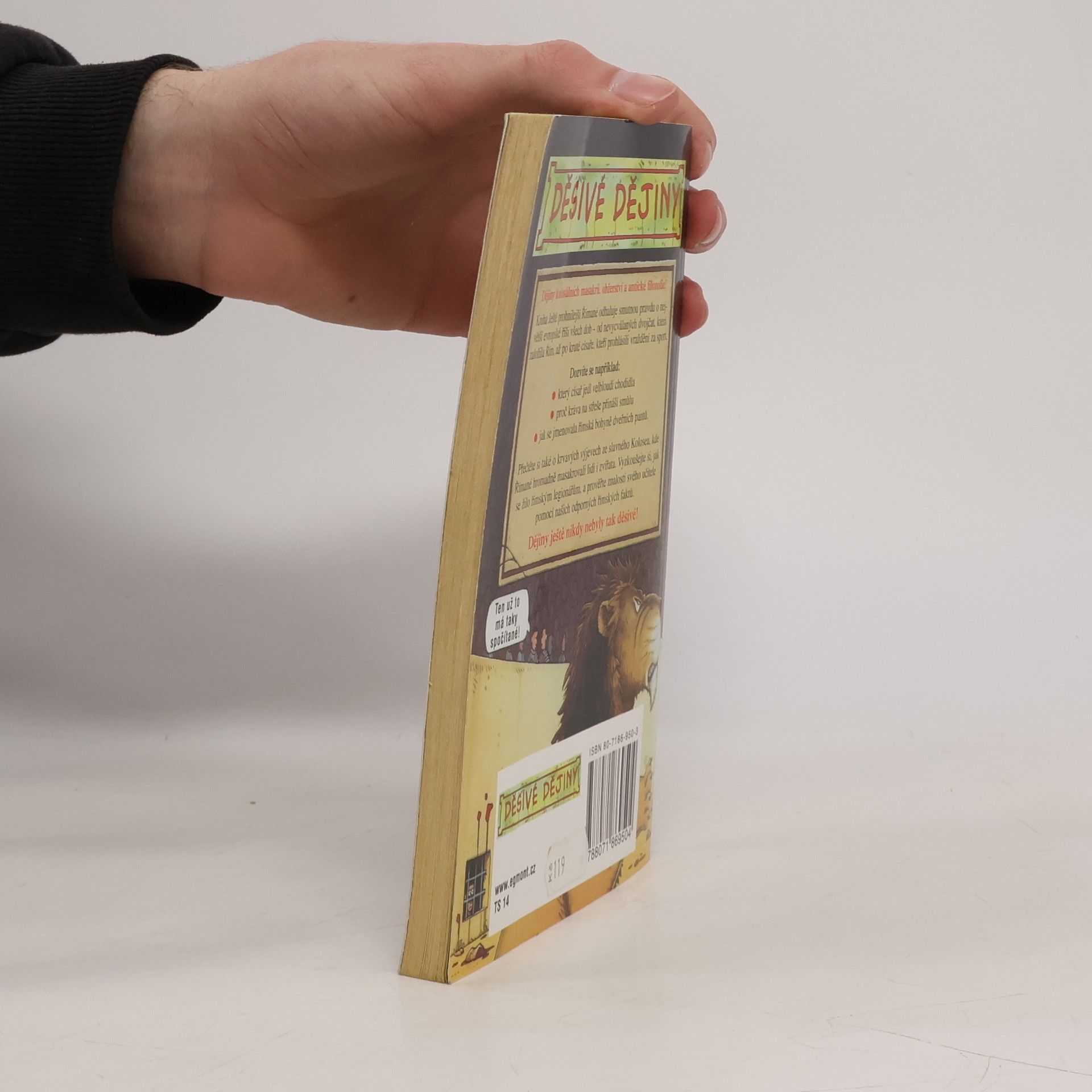 Tato knížka odhaluje smutnou pravdu o největší evropské říši všech dob – od nevycválaných dvojčat, která založila Řím, až po kruté císaře, kteří prohlásili vraždění za národní sport. Přečtěte si o krvavých výjevech ze slavného Kolosea, vyzkoušejte si, jak se žilo římským legionářům, a prověřte znalosti svého učitele pomocí našich odporných římských faktů. Dějiny ještě nikdy nebyly tak děsivé!