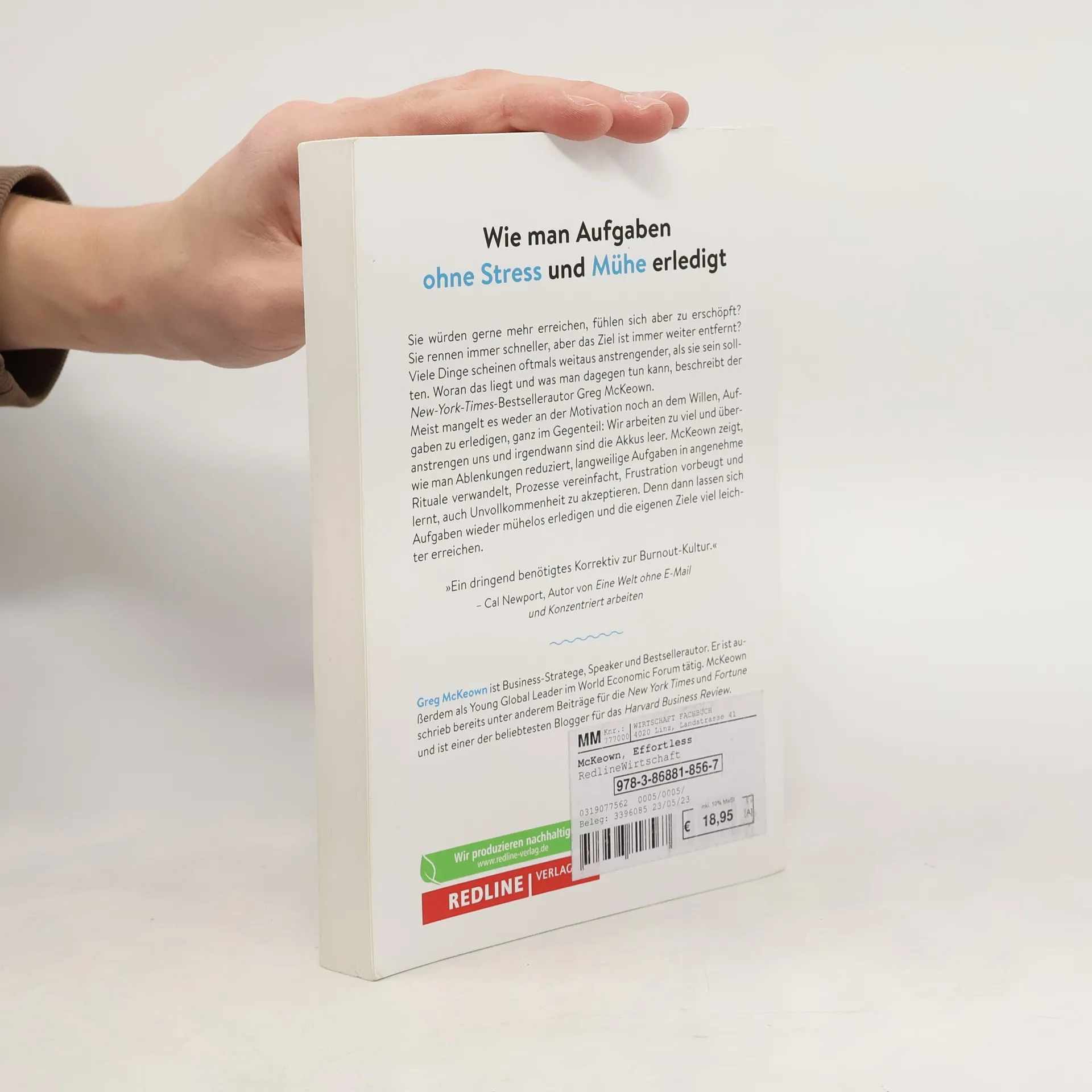 Wie man Aufgaben ohne Stress und Mühe erledigt Sie würden gerne mehr erreichen, fühlen sich aber zu erschöpft? Sie rennen immer schneller, aber das Ziel ist immer weiter entfernt? Viele Dinge scheinen oftmals weitaus anstrengender, als sie sein sollten. Woran das liegt und was man dagegen tun kann, beschreibt der New-York-Times-Bestsellerautor Greg McKeown. Meist mangelt es weder an der Motivation noch an dem Willen, Aufgaben zu erledigen, ganz im Gegenteil: Wir arbeiten zu viel und überanstrengen uns und irgendwann sind die Akkus leer. McKeown zeigt, wie man Ablenkungen reduziert, langweilige Aufgaben in angenehme Rituale verwandelt, Prozesse vereinfacht, Frustration vorbeugt und lernt, auch Unvollkommenheit zu akzeptieren. Denn dann lassen sich Aufgaben wieder mühelos erledigen und die eigenen Ziele viel leichter erreichen. »Ein dringend benötigtes Korrektiv zur Burnout-Kultur.« – Cal Newport, Autor von Eine Welt ohne E-Mail und Konzentriert arbeiten