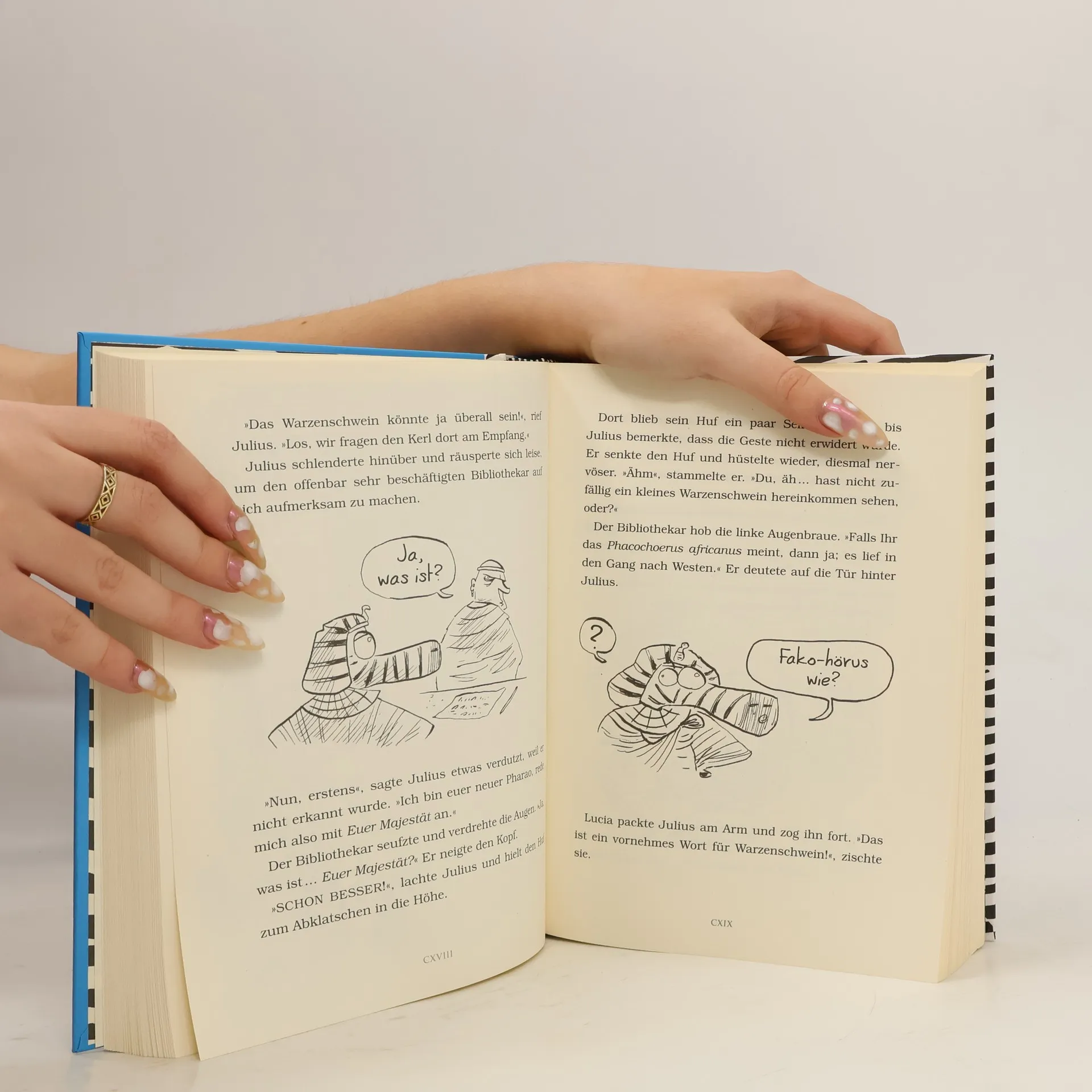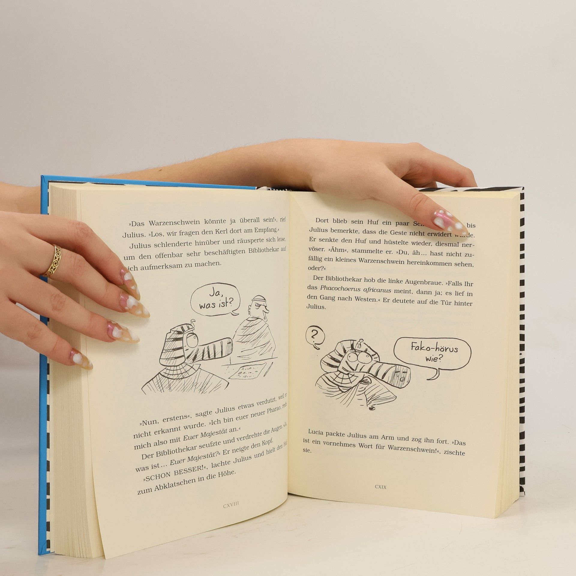 Julius erobert die Welt! Julius kann sein Glück kaum fassen. Versehentlich in Ägypten gestrandet, wird er für einen Gott gehalten. Gemeinsam mit seinen Freunden führt er ein Leben in Saus und Braus in Alexandria. Wie es sich für eine echte Gottheit eben gehört! Doch dann beendet ein Besuch bei den Pyramiden seine Glückssträhne. Denn Felix kann einfach nicht widerstehen und klaut ausgerechnet von Cleopatras Grab einen Stein. Da kennen die Ägypter gar keinen Spaß. Und schon muss Julius mal wieder um sein Leben kämpfen, denn die Ägypter haben inzwischen erkannt, dass er nicht WIRKLICH ein echter Gott ist … Ausstattung: Mit s/w Illustrationen