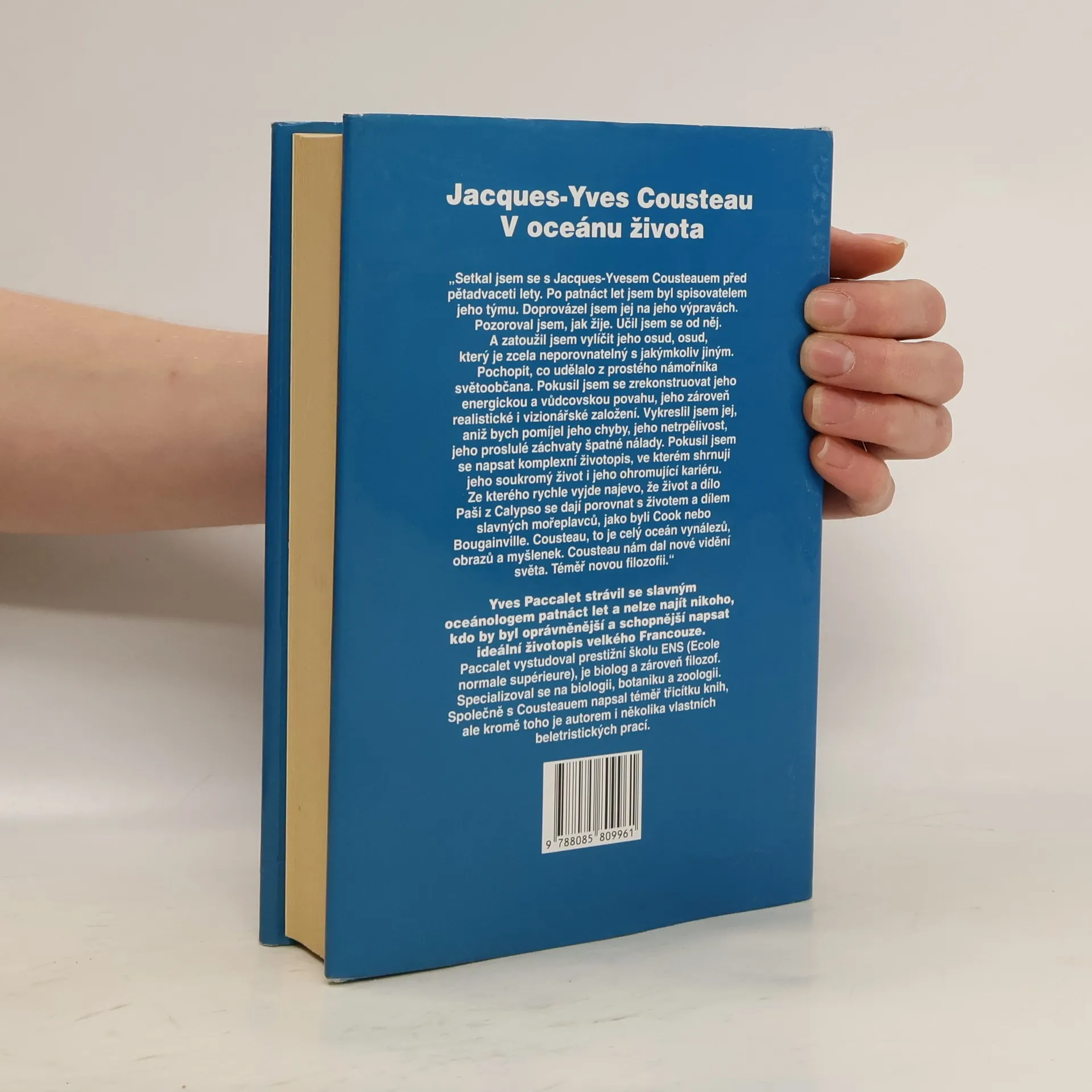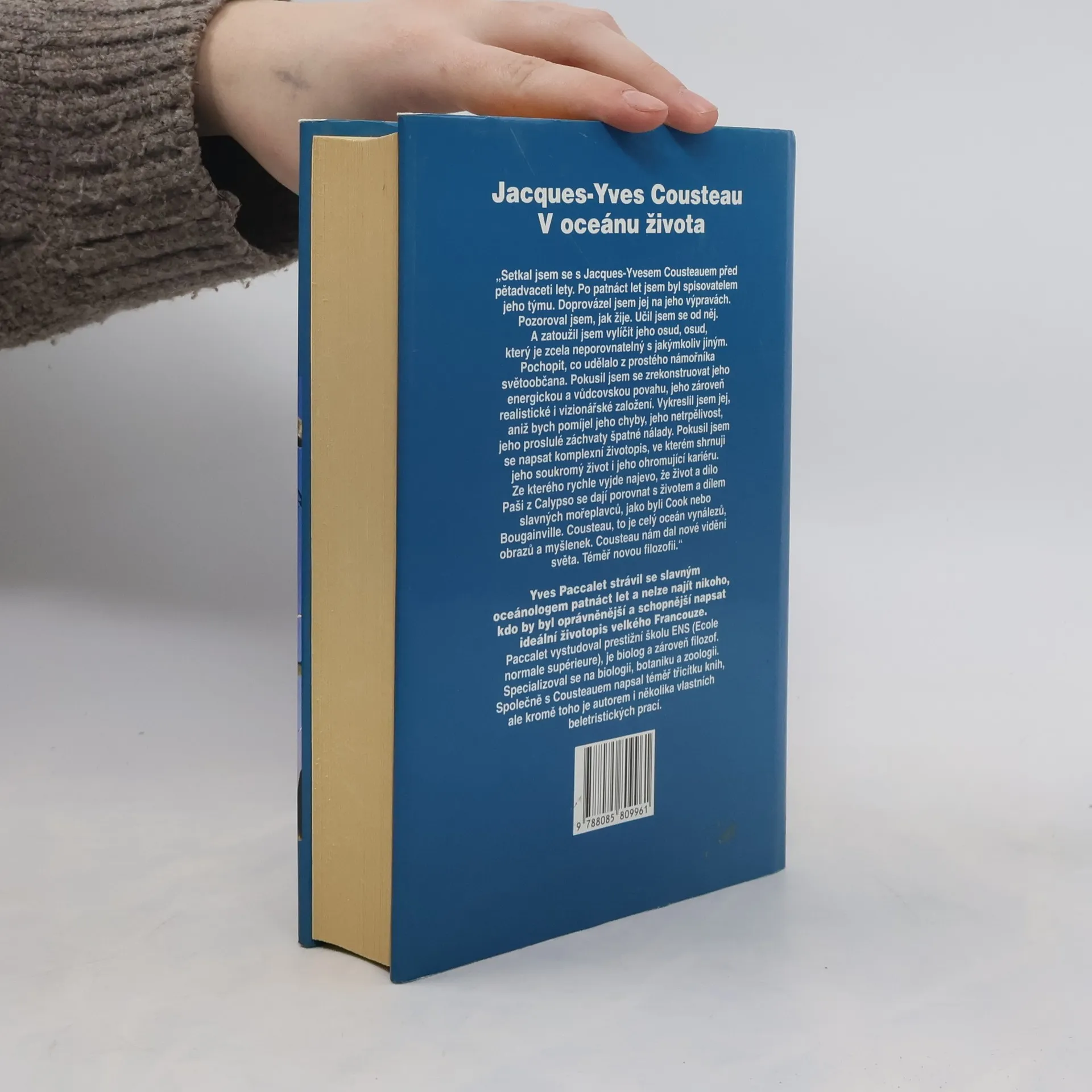 Cousteauův životopis. O životě, práci a charakteru J.-Y. Cousteaua píše jeho dlouholetý spolupracovník Yves Paccalet. Jacques-Yves Cousteau - francouzský oceánolog (nar. 1910), absolvent vysoké vojenské námořní školy, dobrodruh, nadšenec, výzkumník, objevitel, zlepšovatel a vynálezce, milovník moří (i pevnin) a filmování podmořského světa. Chtěl upozornit na znečišťování naší planety, ničení rostlinných a živočišných druhů a ohrožení možnosti přežití lidstva.