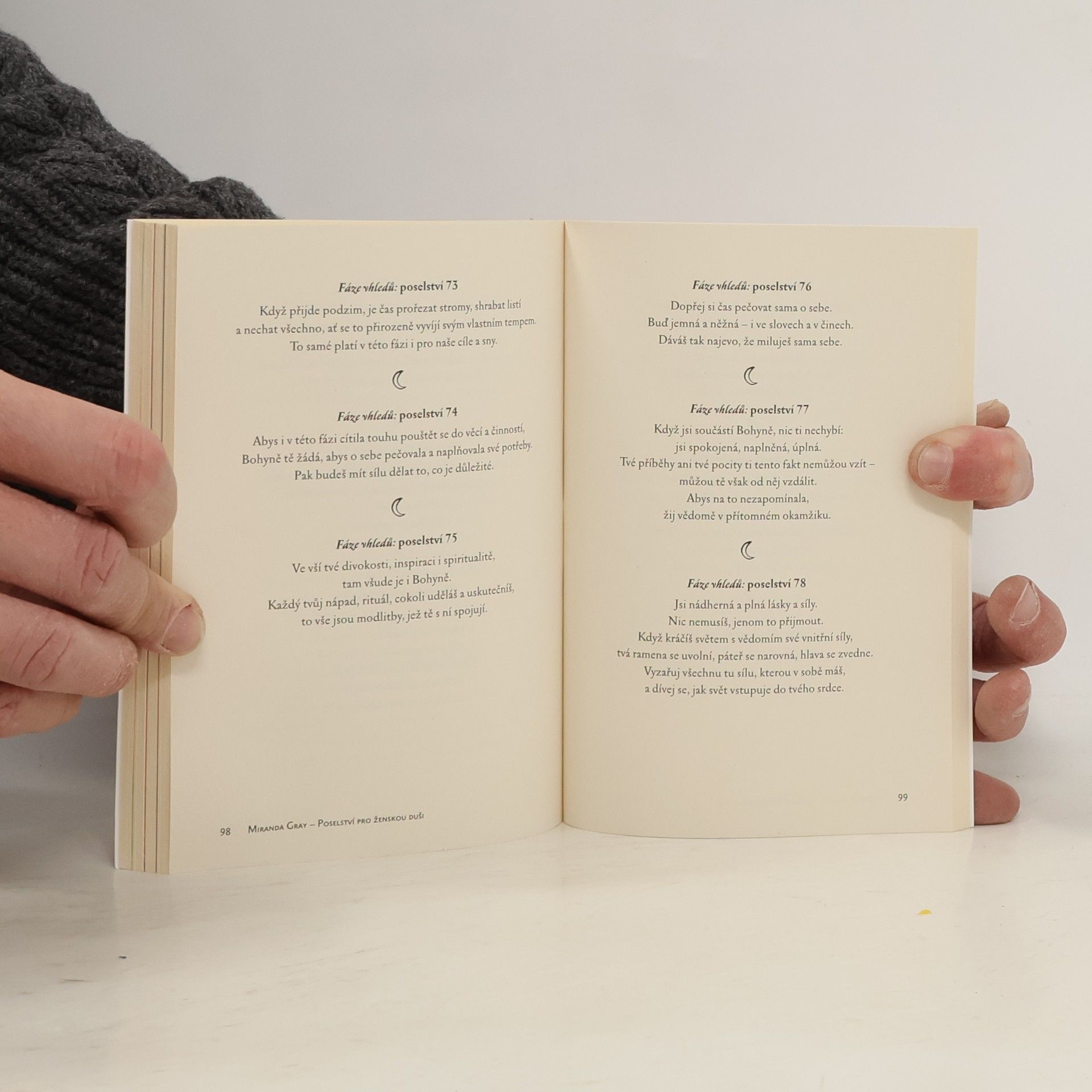 Pokud jste si všimly, že je pro vás jako pro ženy někdy obtížné trvale zůstávat ve spojení se svou duší, se svým vyšším Já, s Bohem, s Bohyní, s Vesmírem, s Božským ženstvím (ať už tomu říkáme jakkoli) i během proměn, jimiž každý měsíc procházíme, pak tahle kniha je vysvětlením i řešením! Kniha obsahuje několik desítek nádherných poselství pro každou fázi vašeho cyklu. Čtěte je postupně nebo vybírejte náhodně podle toho, ve které fázi svého cyklu aktuálně jste. Útlá knížečka do každé kabelky!