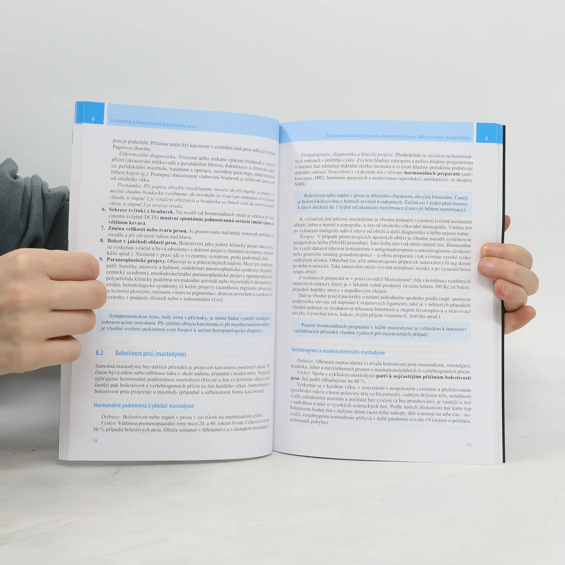 Kniha reaguje na překotné změny v diagnostice a screeningu karcinomu prsu v České republice i celé Evropě v posledních deseti letech. Autoři z různých oborů zpracovali řadu témat stručným a přehledným způsobem. Součástí publikace jsou kapitoly věnované epidemiologii, screeningu a diagnostice v praxi, výsledkům screeningu u nás, histopatologii, dědičnosti, rizikovým faktorům, vlivu hormonů, vyšetřovacím metodám a intervencím a nádorovým markerům. Zařazeny jsou také kapitoly pojednávající o diferenciální diagnostice karcinomu prsu u mladých žen, těhotných a kojících, pacientek s prsními implantáty a u mužů. Závěrečné části se věnují hrazené a nehrazené péči, dávají příklady vyšetřovacích algoritmů a rozebírají chyby v komunikaci mezi zdravotníky a pacienty. Kniha je přínosná jak pro lékaře řady oborů (gynekology, praktické lékaře, chirurgy, radiology), tak pro radiologické asistentky a všeobecné sestry. Publikace je doplněna obrazovou dokumentací z bohatého archivu autorů.