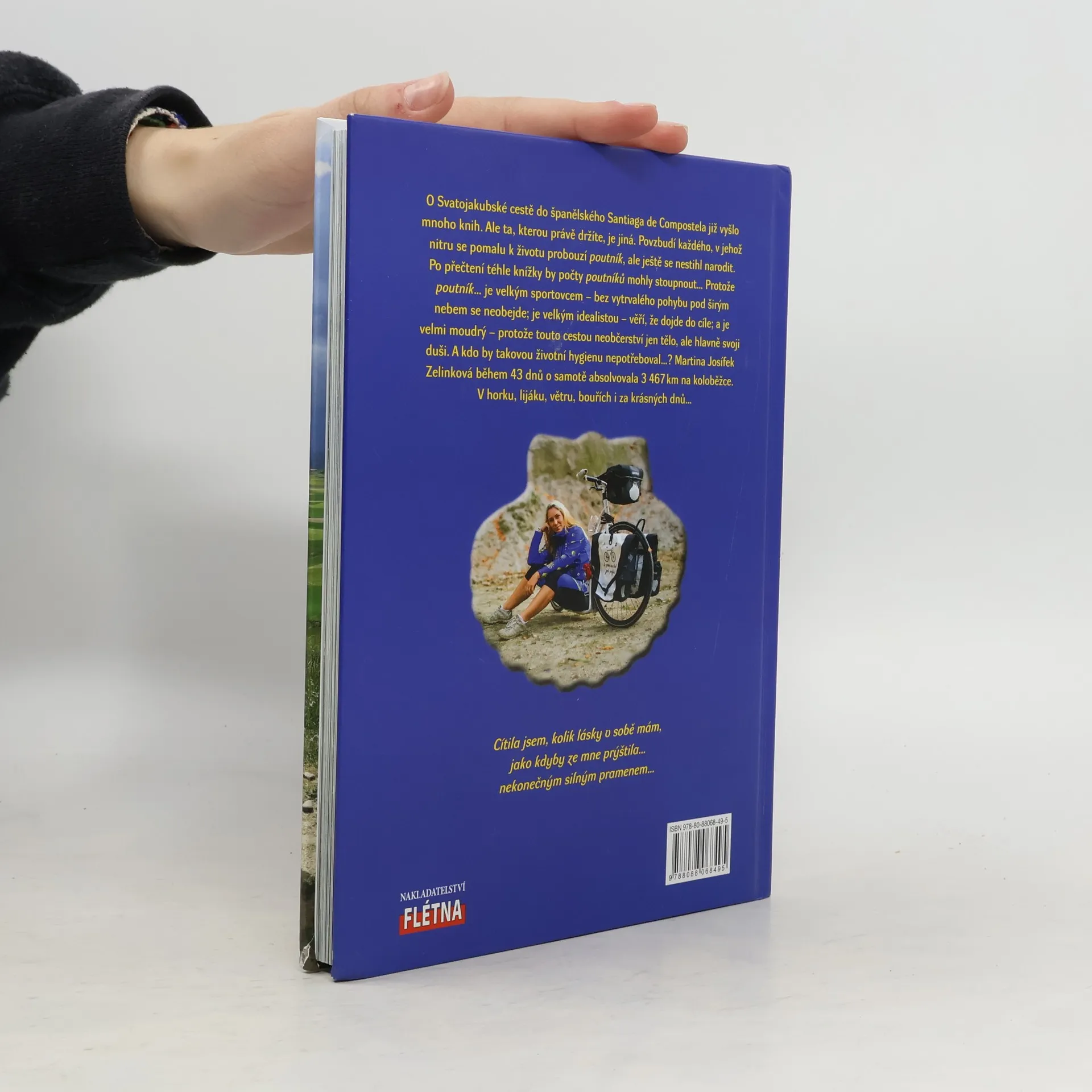 O Svatojakubské cestě již vyšel nespočet knih, ale tato je originální: povzbudí každého, v jehož nitru se pomalu probouzí k životu poutník. A kdo to vlastně je, ten „poutník“?! Velký sportovec – bez vytrvalého pohybu pod širým nebem se neobejde; velký idealista – věří, že doputuje do cíle; také je moudrý – touto cestou neobčerství jen tělo, ale hlavně svoji duši. A kdo z nás by takovouto životní hygienu nepotřeboval…? Martina Josífek Zelinková si prošla životním dnem, než pocítila volání, aby se postavila na koloběžku a vydala se do španělského Santiaga de Compostela. Během 43 dnů o samotě absolvovala 3 467 km na koloběžce V horku, lijáku, větru, bouřích i za krásných dnů… a zažila neuvěřitelné věci.