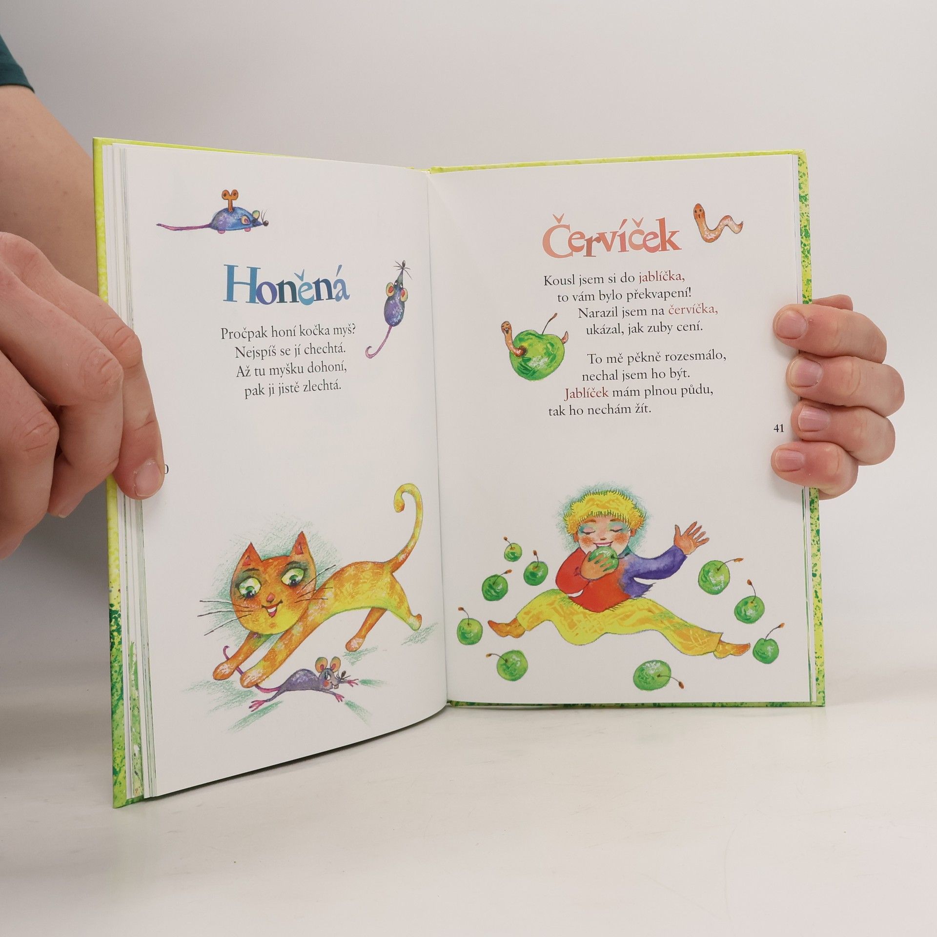 Krátké veršíky na náměty z přírody (Duha, Louka, Les, Tráva, Krtek, Mráz, Vločka ...) ilustrované veselými barvami.