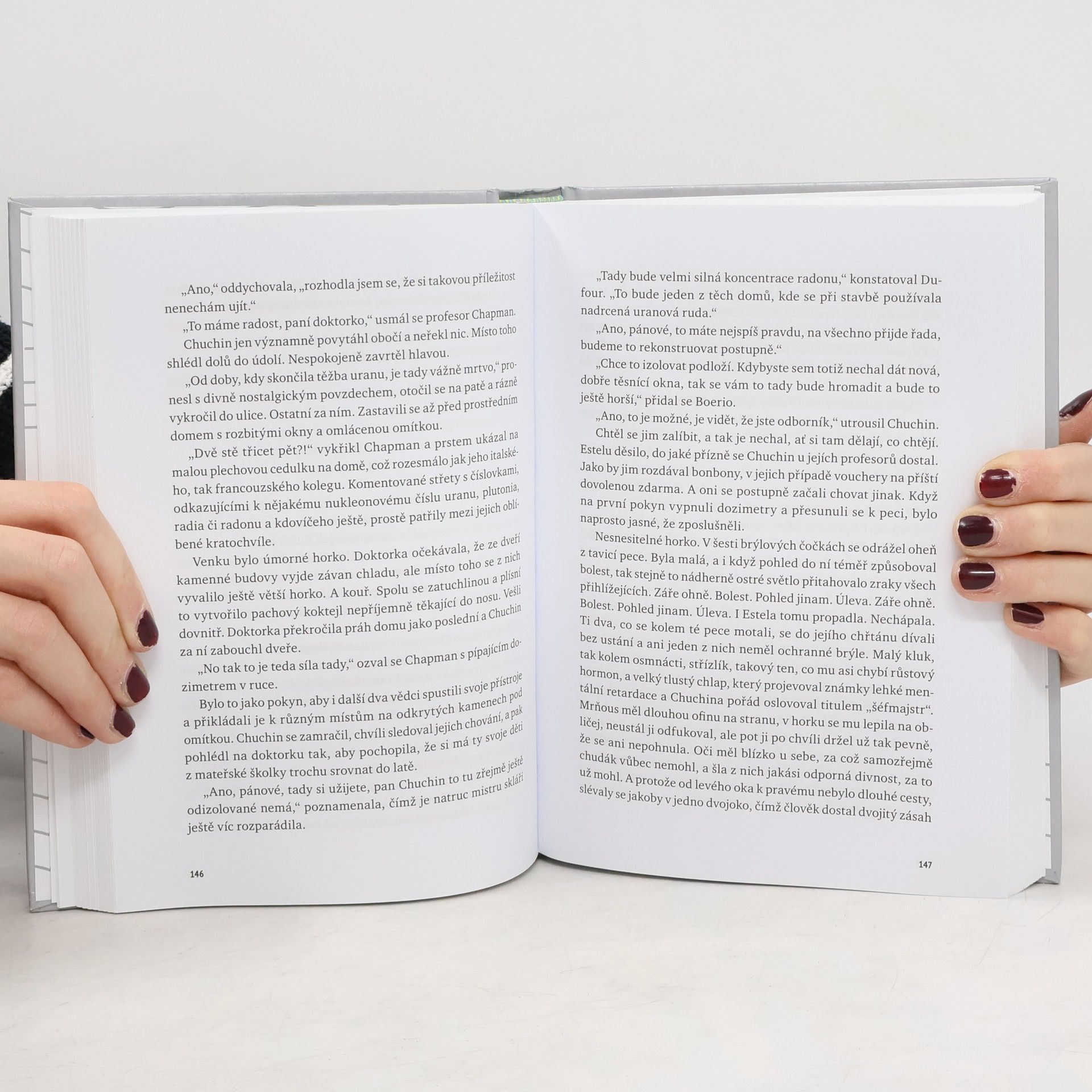 Anglická dívka Angela, která má těsně před svatbou, se v srpnu 1968 vydá do Československa navštívit rodinu svého otce, jehož nikdy nepoznala. Poslední, co od ní její snoubenec Henry uslyší ze sluchátka telefonu, je slovo „chleba“. Pak se po Angele prostě slehne zem. Tak začíná pozoruhodná románová prvotina Lenky Elbe. Angela však oproti očekávání nezahyne pod pásy ruských tanků, její život pohltí historie ještě hlubší a síly ještě temnější. O mnoho let později se z terapeutických důvodů po Angeliných stopách vydává Henry v doprovodu nové, teď už dlouholeté partnerky. Hlavním hrdinou románu je ovšem město Jáchymov, město lázní a lágrů, stříbra a uranu, město s historií slavně krásnou i neslavně strašnou. V knize se mísí všechny jeho paradoxy, osudy i chování lidí ovlivňují jevy normální i paranormální, ve střízlivém lázeňském domě s přísným řádem se dějí nepochopitelné věci, a všechny nitky vedou do jáchymovského podzemí, jak toho skutečného, tak pomyslného. A nade vším se tajuplně line zelenkavá záře uranového skla.