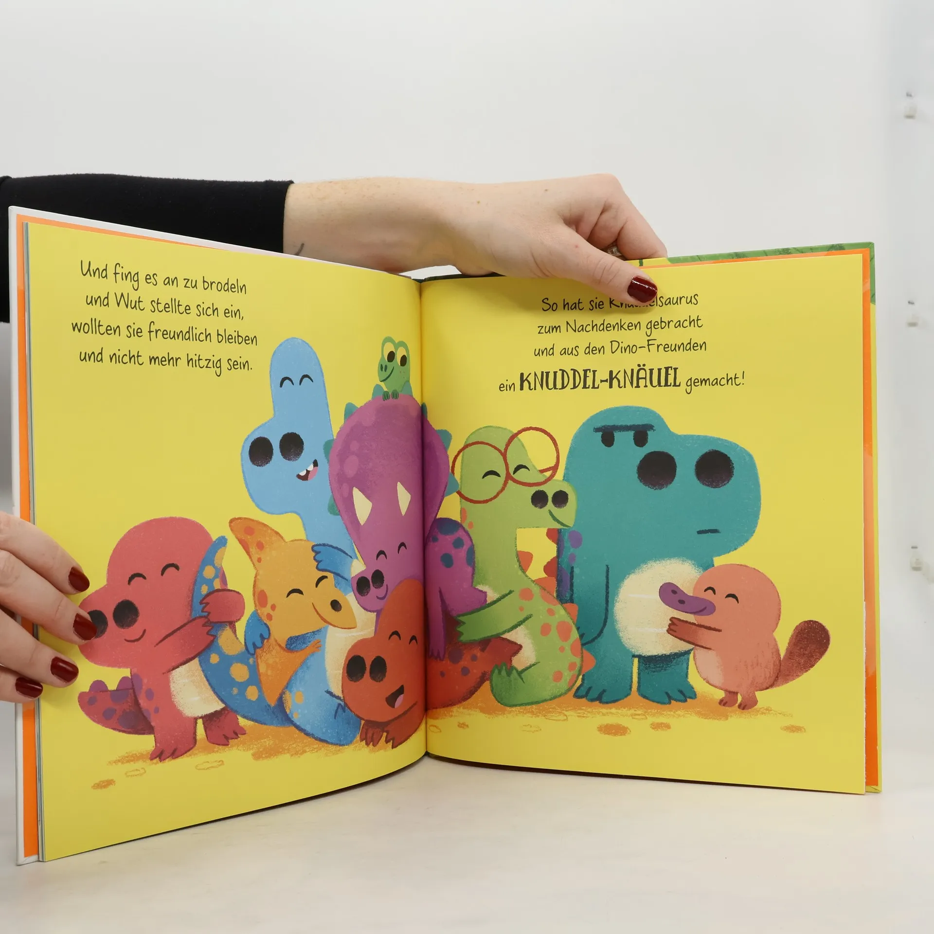 Eine knuddelschöne Geschichte darüber, wie eine Umarmung die Welt ein bisschen besser machen kann. Der kleine Knuddelsaurus stromert durch den Wald und freut sich, als er auf andere Dino-Kinder trifft – so viele neue Freunde zum Spielen! Doch seine gute Laune wird getrübt, als bei einer Runde Verstecken aus ein bisschen Gezanke ein schlimmer Streit wird. Traurig fragt sich der Knuddelsaurus, was er nur tun kann, damit sich alle Dinos wieder vertragen. Was ein Glück, dass ihm die Geheimzutat seines Papas einfällt … Rachel Bright gelingt nach "Der Sorogsaurus" eine weitere, liebevoll gereimte Geschichte über wichtige Alltagssituationen für Kinder und überzeugt wie mit ihren vorherigen Bilderbüchern, zum Beispiel "Der Löwe in dir", mit einer berührenden Geschichte und liebevollen Illustrationen. "Der Knuddelsaurus" ist das zweite Buch aus der erfolgreichen Kleine Saurier -Reihe. Alle Bücher können unabhängig voneinander vorgelesen werden
