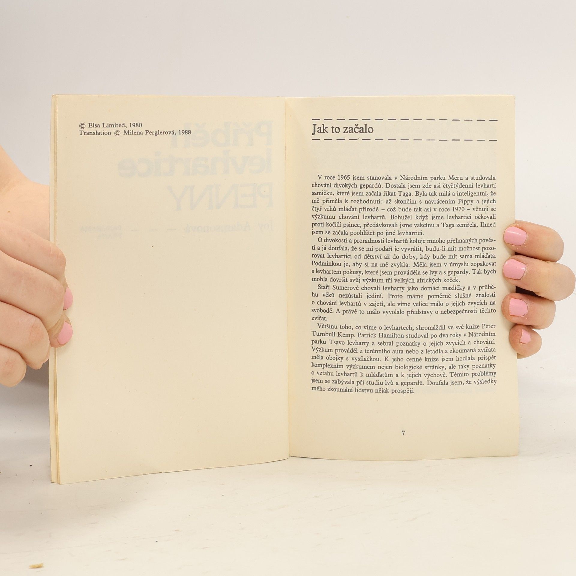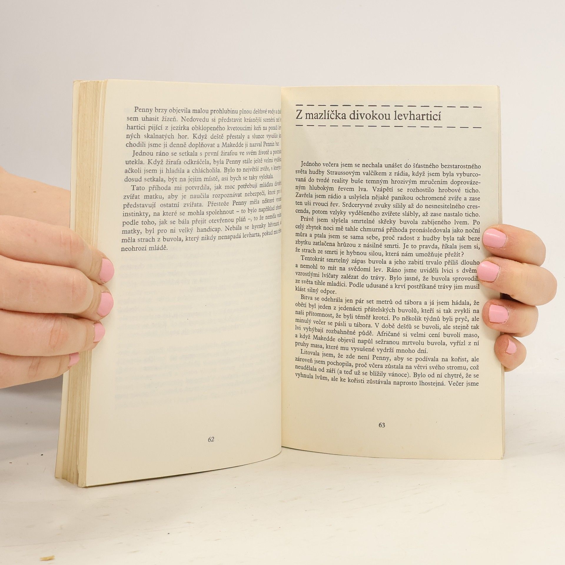 Joy Adamsonová popisuje svoji práci s levharticí Penny. Joy dlouhou dobu čekala, kdy by se mohla ujmout opuštěného mláděte levharta. Jednou lovecká skupina našla mládě, které bylo zřejmě opuštěné matkou. Joy si vzala mládě na starost a pojmenovala ho Penny. Penny si brzy na Joy zvykla a bralaji jako náhradní matku. Penny rychle rostla a Joy jí musela urychleně najít nový domov. Stala se jím rezervace Shaba.