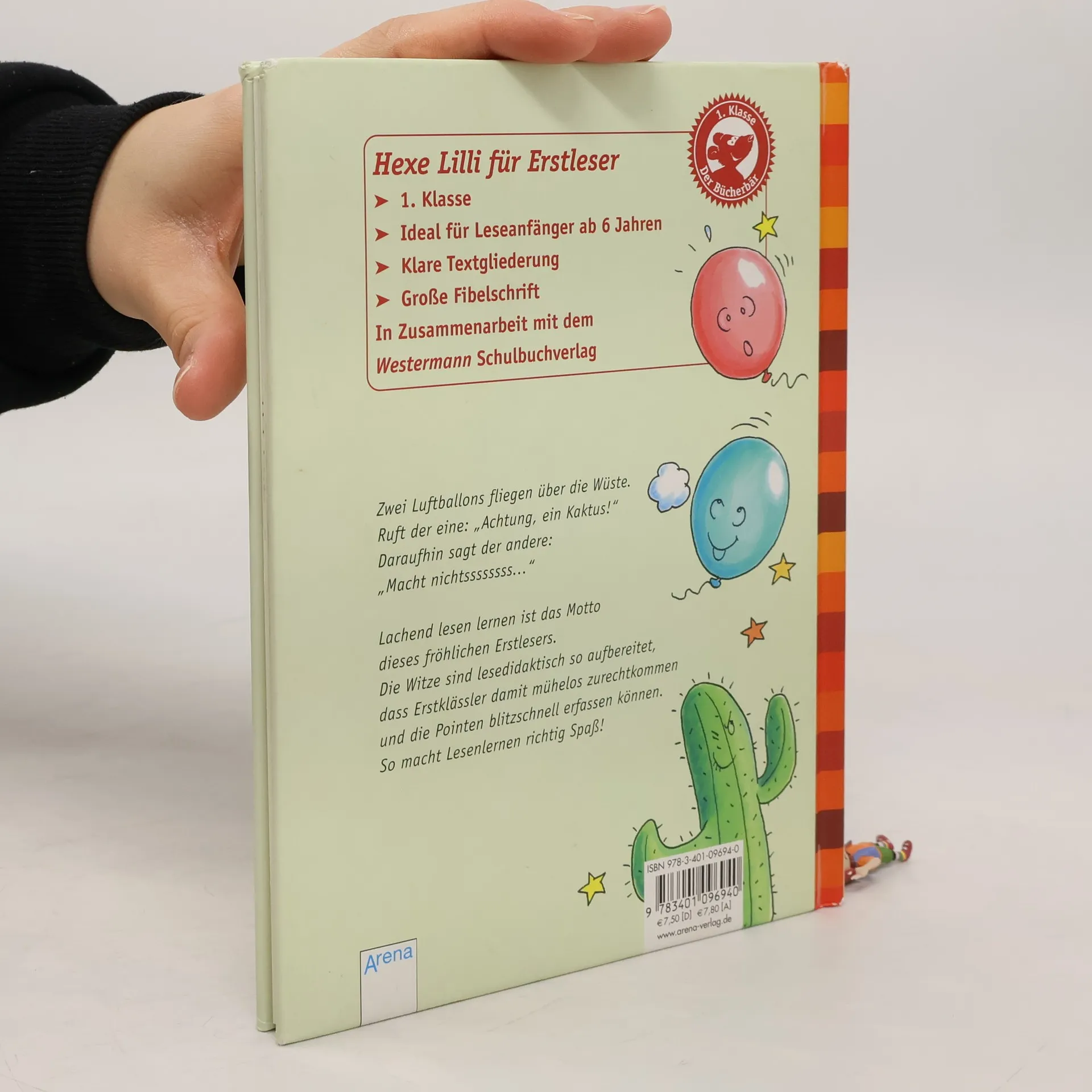 Zwei Luftballons fliegen über die Wüste. Ruft der eine: 'Achtung, ein Kaktusssssss ...' Lachend lesen lernen ist das Motto dieses fröhlichen Erstlesers. Die Witze sind lesedidaktisch so aufbereitet, dass Erstleser mühelos damit zurechtkommen und die Pointen blitzschnell erfassen können. So macht Lesenlernen richtig Spaß!