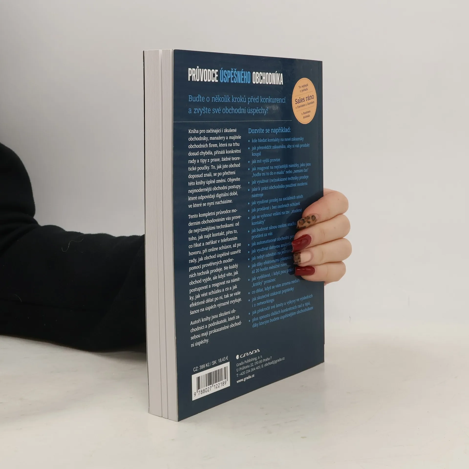 Buďte o několik kroků před konkurencí a zvyšte své obchodní úspěchy! Tato kniha je určena jak začínajícím, tak zkušeným obchodníkům, manažerům a majitelům firem. Přináší konkrétní rady a tipy z praxe, které změní váš pohled na obchod. Objevíte moderní obchodní postupy odpovídající digitální době. Kompletní průvodce vás provede různými technikami, od hledání kontaktů po úspěšné uzavření obchodu. Naučíte se, jak reagovat na námitky, vést schůzky a efektivně jednat po nich, což výrazně zvyšuje vaše šance na úspěch. Autoři jsou zkušení obchodníci s prokazatelnými úspěchy. Zjistíte, kde hledat nové zákazníky, jak přesvědčit k nákupu, zvyšovat provize a reagovat na časté námitky. Dozvíte se také, jak využívat moderní nástroje a techniky prodeje, včetně sociálních sítí, a jak prodávat bez osobních schůzek. Kniha se zaměřuje na budování silné osobní značky, automatizaci obchodních procesů a využívání datové analytiky. Naučíte se plánovat schůzky efektivně, jak vydělávat i během prázdnin, co dělat při neúspěších a jak překročit své limity. Obsahuje také množství dalších konkrétních rad a tipů pro úspěšné obchodování.