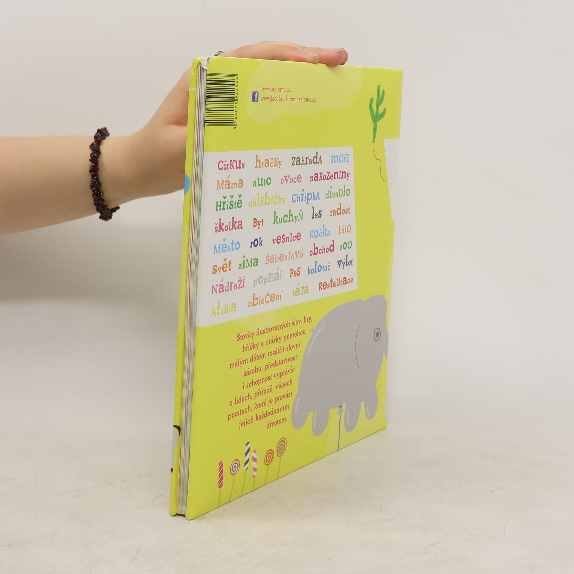 -Stovky ilustrovaných slov, hry, hříčky a otázky pomohou malým dětem rozšířit slovní zásobu představivost i schopnost vyprávět o lidech, přírodě, věcech, pocitech, které je provází jejich každodenním životem. - Práce s tímto hravým obrázkovým slovníkem je z větší části založena na spolupráci dítěte a dospělého. Jejím cílem není zahrnout do jednotlivých oblastí co nejvíce slov a situací, naopak je zde ponechán prostor pro fantazii, pro nepřeberné množství dalších otázek, které by nikdy neměly zůstat bez odpovědí. Společně s dětmi mohou dospělí vymýšlet nové hry a úkoly, hledat další slova, vyprávět si, vysvětlovat, vzájemně se obohacovat vlastním vnímáním světa.