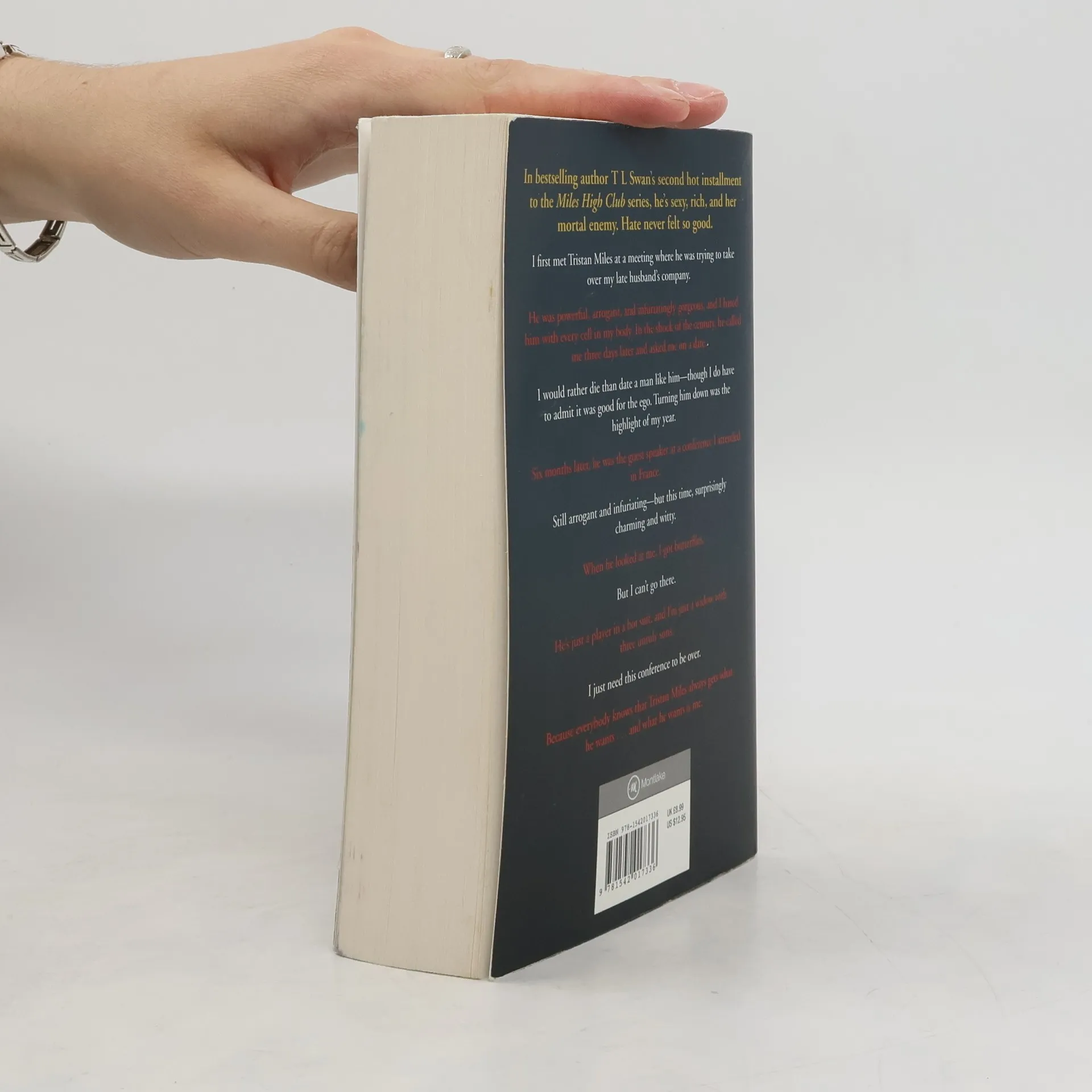In bestselling author T L Swan's second hot installment to the Miles High Club series, he's sexy, rich, and her mortal enemy. Hate never felt so good. I first met Tristan Miles at a meeting where he was trying to take over my late husband's company. He was powerful, arrogant, and infuriatingly gorgeous, and I hated him with every cell in my body. In the shock of the century, he called me three days later and asked me on a date. I would rather die than date a man like him--though I do have to admit it was good for the ego. Turning him down was the highlight of my year. Six months later, he was the guest speaker at a conference I attended in France. Still arrogant and infuriating--but this time, surprisingly charming and witty. When he looked at me, I got butterflies. But I can't go there. He's just a player in a hot suit, and I'm just a widow with three unruly sons. I just need this conference to be over. Because everybody knows that Tristan Miles always gets what he wants...and what he wants is me.