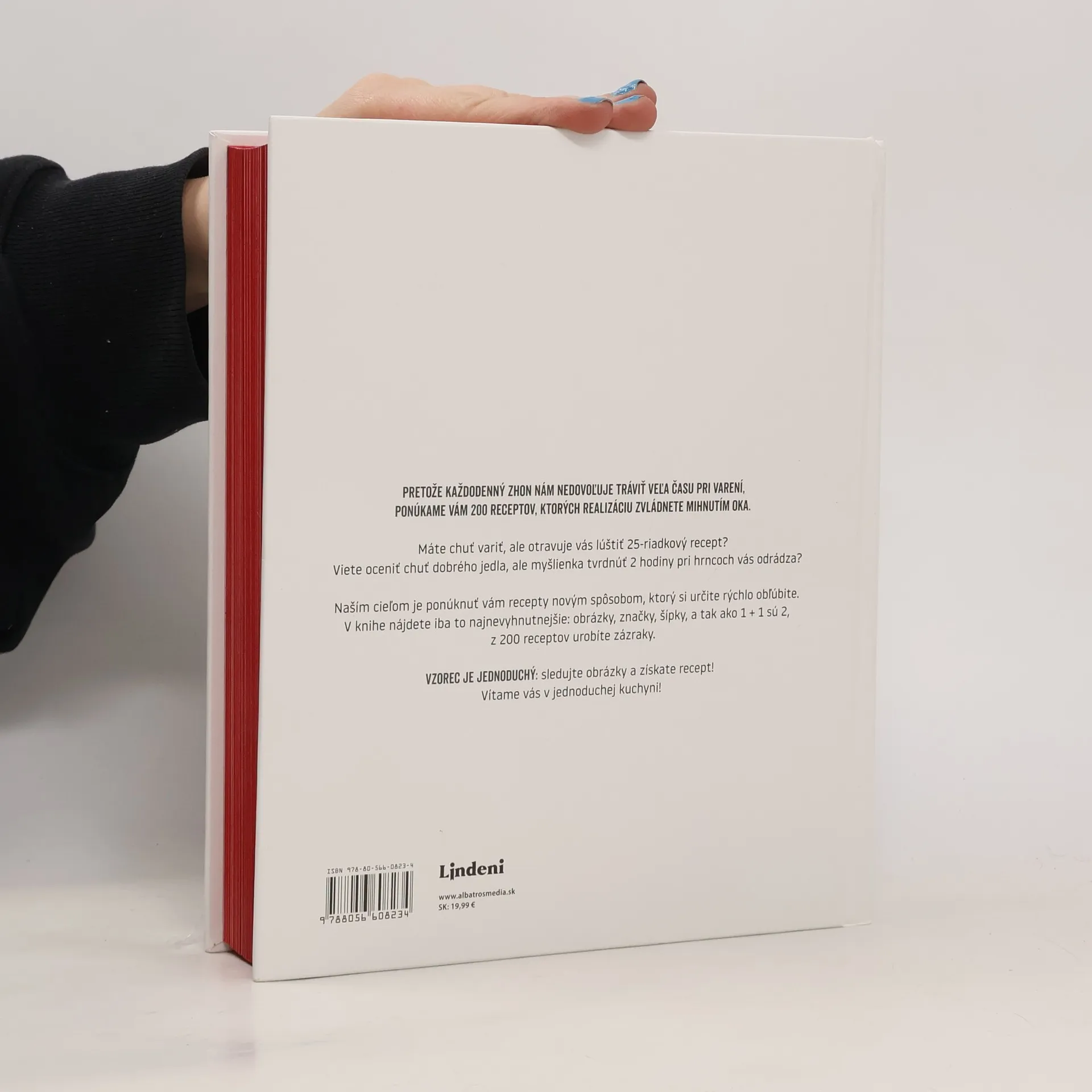 Vítame vás v jednoduchej kuchyni! Pretože každodenný zhon nám nedovoľuje tráviť veľa času pri varení, ponúkame vám 200 receptov, ktorých realizáciu zvládnete mihnutím oka. Máte chuť variť, ale otravuje vás lúštiť 25-riadkový recept? Viete oceniť chuť dobrého jedla, ale myšlienka tvrdnúť 2 hodiny pri hrncoch vás odrádza? Naším cieľom je ponúknuť vám recepty novým spôsobom, ktorý si určite rýchlo obľúbite. V knihe nájdete iba to najnevyhnutnejšie: obrázky, značky, šípky, a tak ako 1 + 1 sú 2, z 200 receptov urobíte zázraky. Vzorec je jednoduchý: sledujte obrázky a získate recept! Vítame vás v jednoduchej kuchyni!