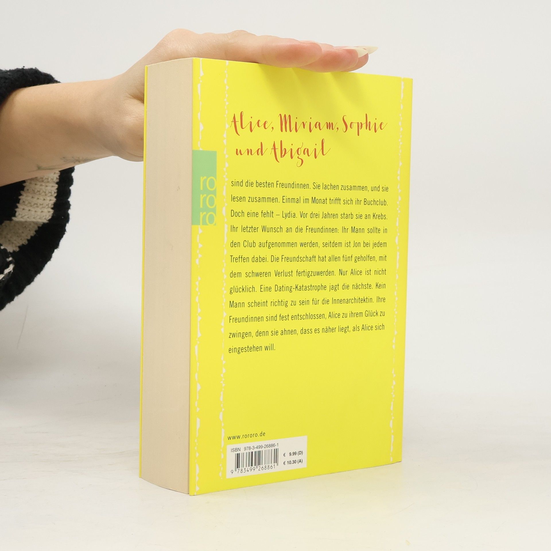 Alice, Miriam, Sophie, Connie und Abigail sind beste Freundinnen, die gemeinsam lachen und lesen. Einmal im Monat treffen sie sich in ihrem Buchclub, doch Lydia fehlt seit drei Jahren, als sie an Krebs starb. Ihr letzter Wunsch war, dass ihr Mann Jon in den Club aufgenommen wird, und seitdem ist er fester Bestandteil der Treffen. Die Freundschaft hilft den Frauen, den Verlust zu verarbeiten, doch Alice ist unglücklich. Ihre Dating-Versuche enden in Katastrophen, und ihre Freundinnen sind fest entschlossen, sie zum Glück zu führen, da sie glauben, dass es näher ist, als Alice denkt. Alice, 32, Innenarchitektin, hat eine Vorliebe für Humor, um ihre Gefühle zu verbergen. Miriam, seit der Uni mit Craig zusammen, fühlt sich zunehmend nur als Mutter und ist unglücklich über unsensible Kommentare. Connie, 40, neigt zur Selbstunterschätzung und wird von ihrem dreijährigen Sohn und Ehemann Greg oft übergangen. Abigail, die jüngste, ist eine leidenschaftliche Lehrerin, die mit dem ruhigen Anästhesisten Pete zusammenlebt. Sophie, Alices lebensfrohe Kollegin, hat eine laute Art, die ihre Loyalität und Ehrlichkeit verdeckt, während Jon, der einzige Mann im Club, seit dem Tod seiner Frau Lydia, die beste Freundin von Alice und Miriam, Teil der Runde ist.
