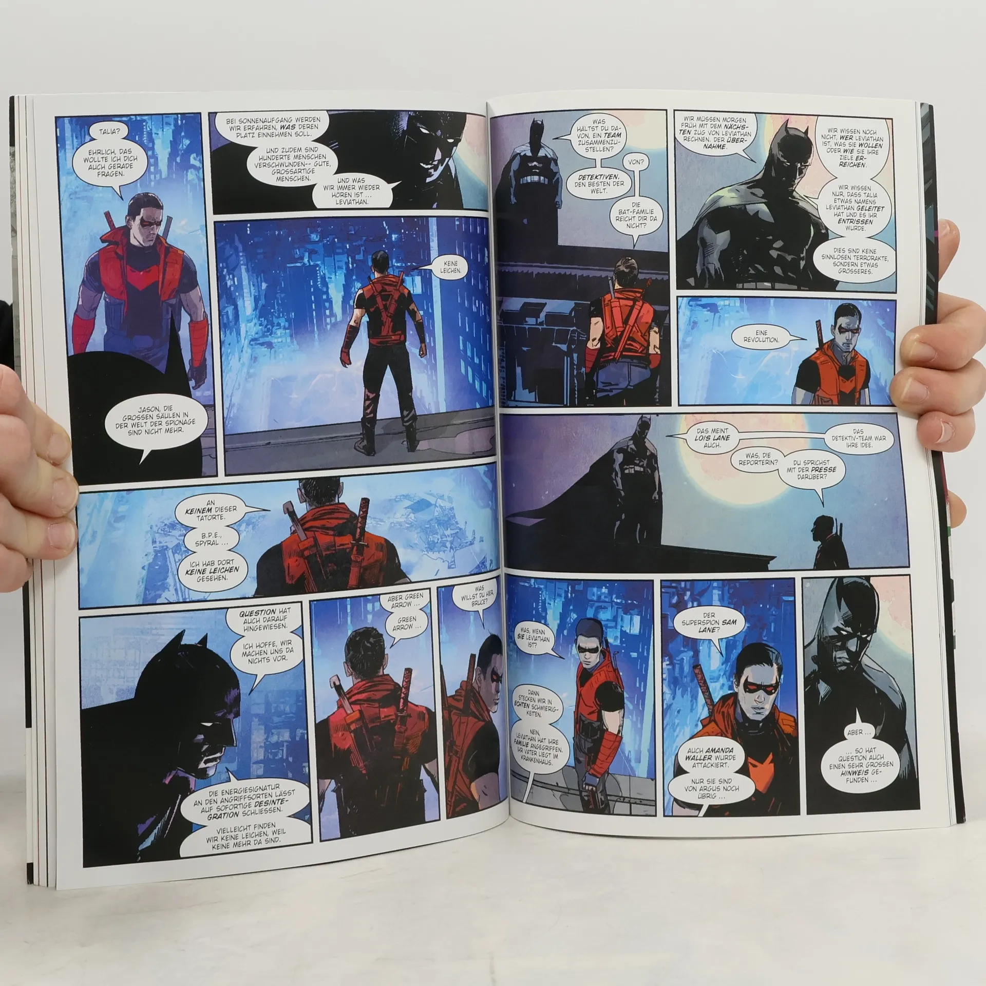 LEVIATHAN SCHLÄGT ZU! Die mächtigsten und einflussreichsten Geheimdienste, darunter das Büro für paranormale Ermittlungen B.P.E., Spyral und ARGUS, wurden in einem verheerenden Handstreich ausgelöscht! Die Erde steht kurz vor einer feindlichen Übernahme durch die mysteriöse Organisation Leviathan! Deren Anführer, Methoden und Ziele: unbekannt! Batman und Lois Lane sammeln mit Green Arrow, Manhunter, Question und Plastic Man die besten Detektive des DC-Universums um sich, um dieses Rätsel zu lösen. Doch die Zeit drängt, vor allem, als Leviathan beginnt, einigen der größten Verteidiger der Erde unmoralische Angebote zu unterbreiten …! Vom Meister des Superhelden-Mystery-Thrillers Brian Michael Bendis (SUPERMAN) und Zeichner Alex Maleev, dem von Fans und Kritikern bejubelten Daredevil-Dream-Team! ENTHÄLT: DC’S YEAR OF THE VILLAIN SPECIAL (2019) 1, EVENT LEVIATHAN (2019) 1-3