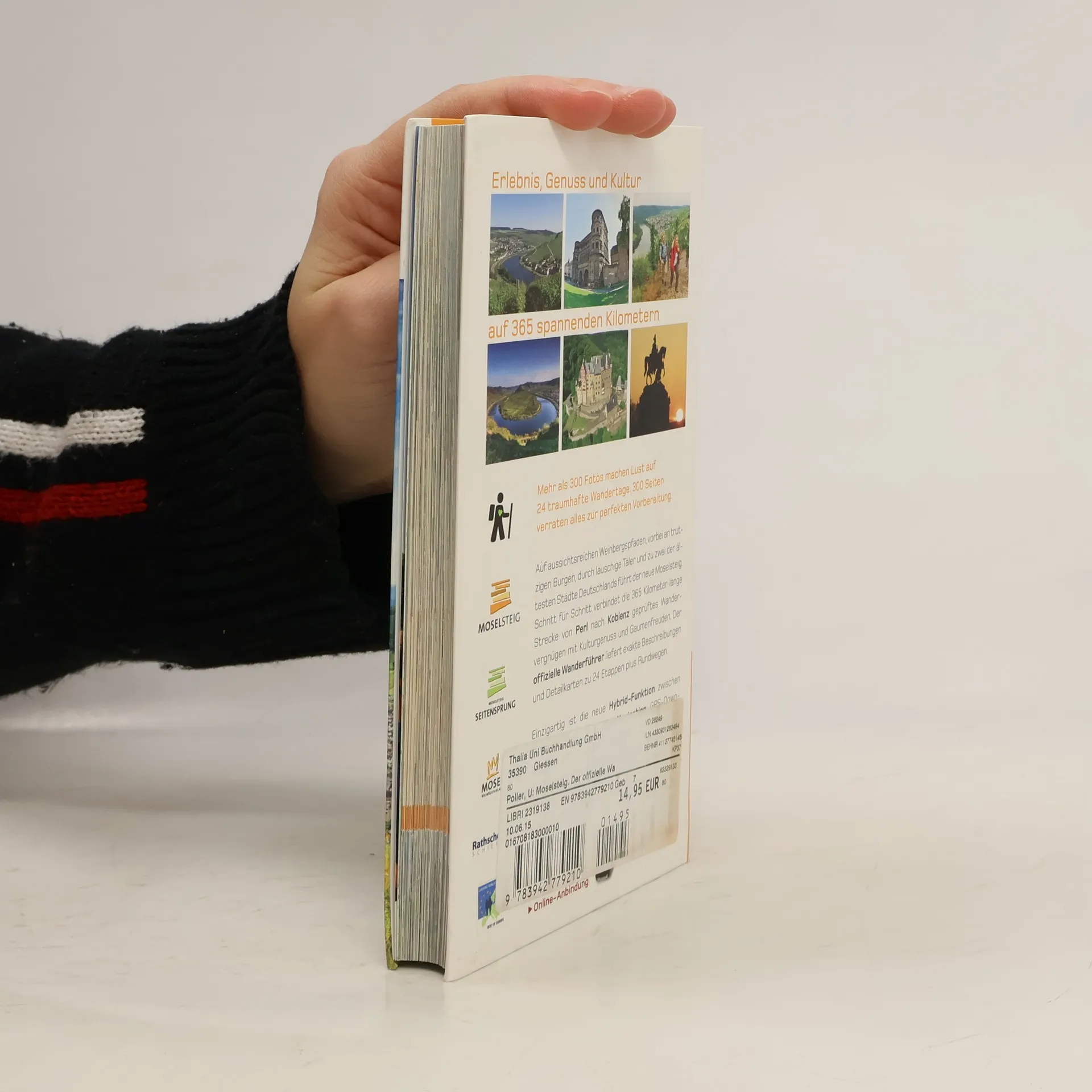 Auf steilen Weinbergspfaden, vorbei an trutzige Burgen und durch zwei der ältesten Städte Deutschlands: Einer der längsten Fernwanderwege Deutschlands garantiert 365 Kilometer Wandervergnügen von Perl bis zum deutschen Eck in Koblenz. Der offizielle Wanderführer „Moselsteig“, der in Zusammenarbeit mit der Mosellandtouristik entstanden und komplett aktualisiert ist, liefert aktuelle Streckenbeschreibungen zu allen 24 Etappen und alle Infos zu Anfahrt, Streckenprofilen sowie Einkehr- und Übernachtungstipps. Ergänzt wird der Band durch zusätzliche Rundtouren links und rechts des Moselsteigs. Großformatige Bilder, ein robuster und Outdoor-tauglicher Flexcover-Einband und detaillierte wie aufgeräumte Karten machen schon das Lesen und die Vorbereitung der Touren zum Genuss. Zusätzlich bietet der „Moselsteig“ Kompakt-Führer eine umfangreiche Online-Anbindung: GPS-Downloads zu allen Touren erleichtern die Planung, über die Scan-to-go-Funktion können sich Smartphone-Besitzern per QR-Code die Startpunkte jeder Tour direkt anzeigen lassen. Oder die Tour direkt in die einfache Gratis-App „traumtouren“ übertragen.