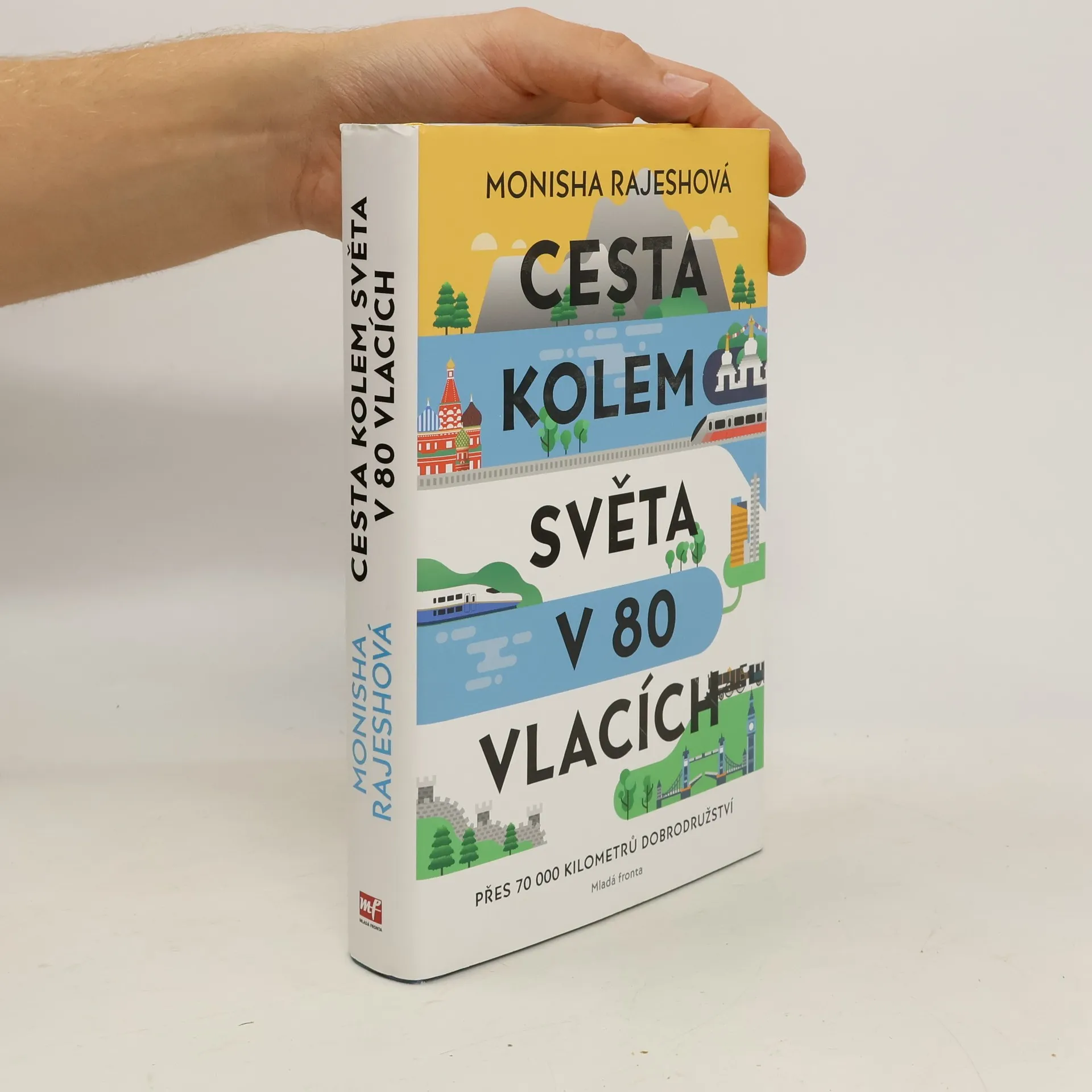Přes 70 000 kilometrů dobrodružství na kolejích. Když Monisha oznámila svůj záměr absolvovat cestu kolem světa v 80 vlacích, všichni si jen klepali na čelo. Přesto netrvalo dlouho a ona skutečně hodila batoh na záda, vzala za ruku svého snoubence Jema a vydala se na pečlivě naplánovanou pouť po kolejích čítající více než 70 000 kilometrů z jednoho konce světa na druhý a zase zpátky. Během sedmi měsíců jim za okénkem ubíhaly tak rozdílné kraje jako Mongolsko, Kanada, Čína, Japonsko, Kazachstán, Rusko, Amerika, a dokonce se odvážili i do Severní Koreje. Projeli se po Transsibiřské magistrále, luxusním Orient Expresem, japonskými rychlovlaky, ale také ušmudlanými lokálkami. Potkali spoustu zábavných, svérázných a milých pasažérů, s nimiž si směňovali jídlo i životní příběhy. Monisha Rajeshová, novinářka působící mimo jiné v denících The Guardian či The New York Times, o svém putování vypráví tak, že si tu každý najde svoje. Bizarní i komické zážitky z vlaků střídá poetický popis krajiny nebo hekticky pulsujících velkoměst, nechybí společensko-politický kontext, historické vsuvky a vtipné komentáře. Po přečtení dostane každý chuť sbalit si svých pět švestek a nasednout do prvního dálkového expresu.