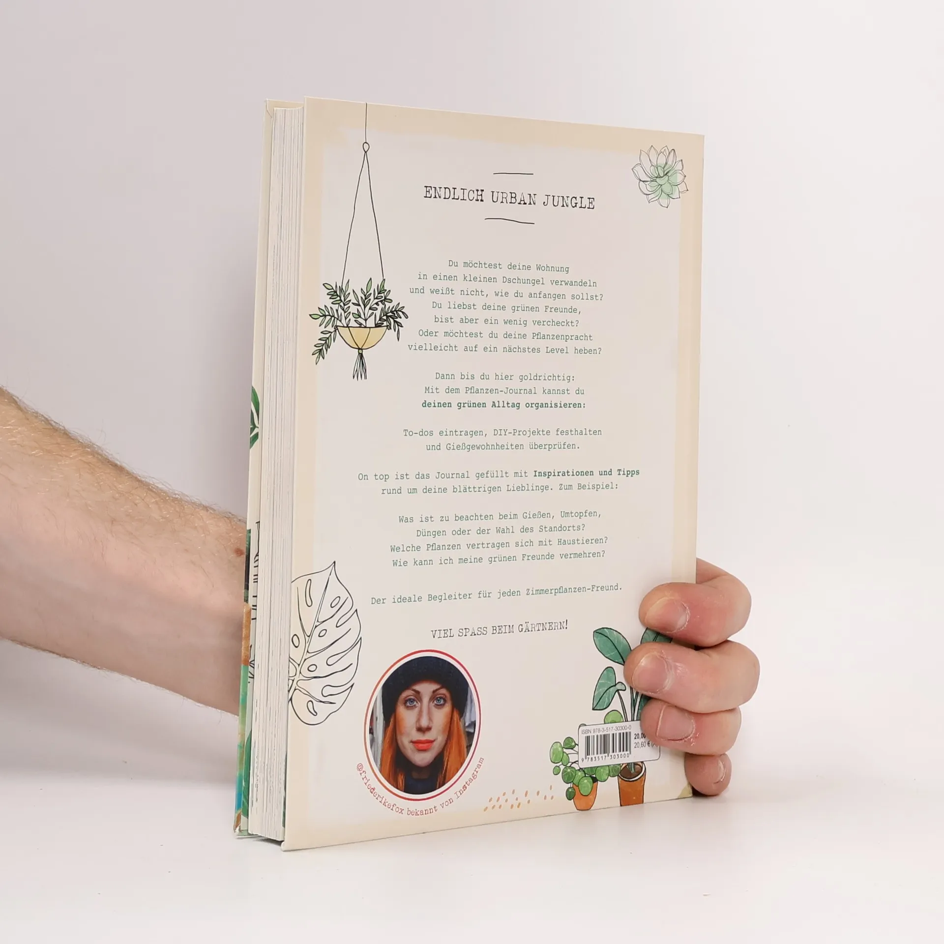 Endlich Urban Jungle Du möchtest deine Wohnung in einen kleinen Dschungel verwandeln und weißt nicht, wie du anfangen sollst? Du liebst deine grünen Freunde, bist aber ein wenig vercheckt? Oder möchtest du deine Pflanzenpracht vielleicht auf ein nächstes Level heben? Dann bist du hier goldrichtig: Mit dem Pflanzenjournal kannst du deinen grünen Alltag organisieren: To-dos eintragen, DIY-Projekte festhalten und Gießgewohnheiten überprüfen. On top ist das Journal gefüllt mit Inspirationen und Tipps rund um deine blättrigen Lieblinge. Zum Beispiel: Was ist zu beachten beim Gießen, Umtopfen, Düngen oder der Wahl des Standorts? Welche Pflanzen vertragen sich mit Haustieren? Wie kann ich meine grünen Freunde vermehren? Der ideale Begleiter für jeden Zimmerpflanzen-Freund. Viel Spaß beim Gärtnern! Ausstattung: Durchgehend illustriert