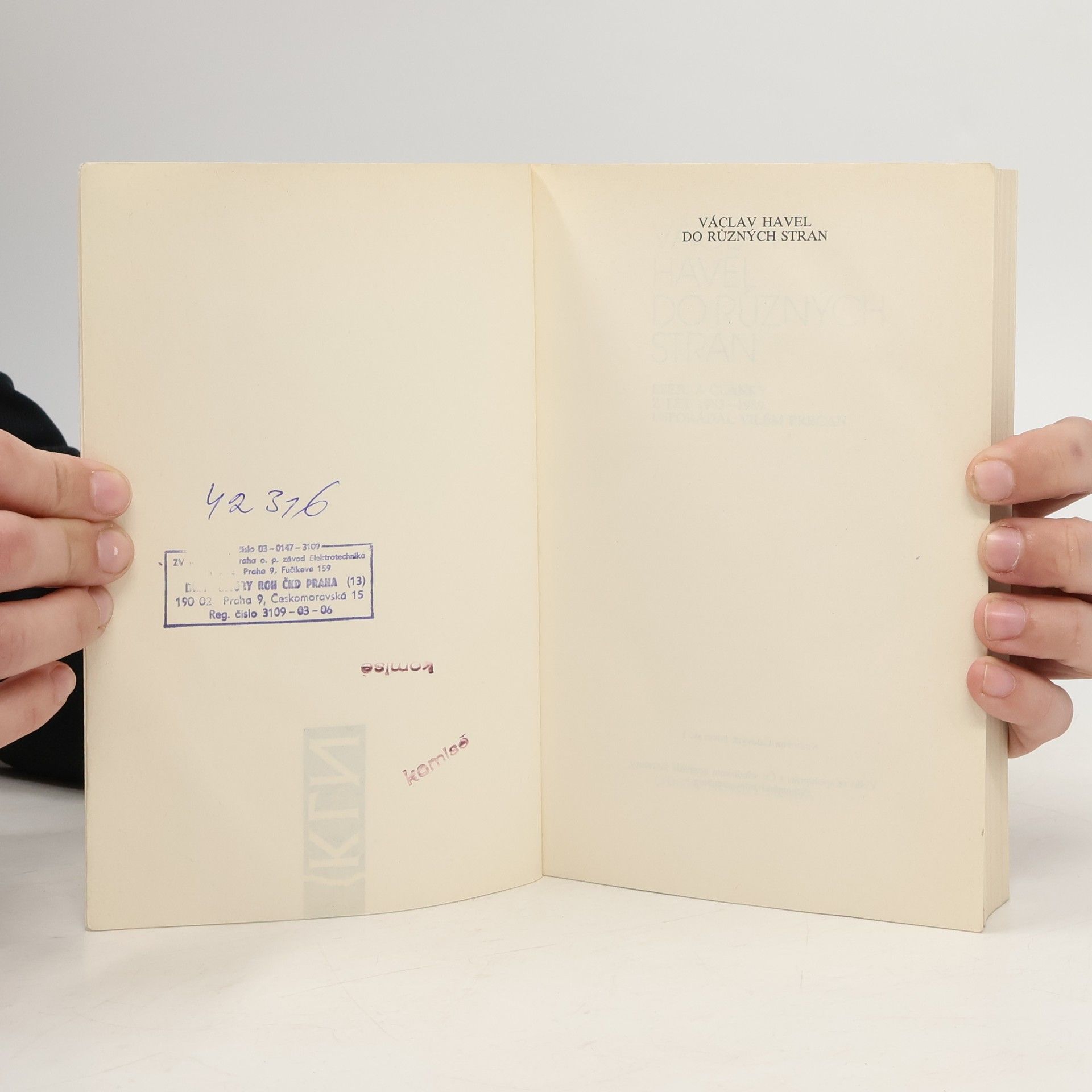 Do různých stran: eseje a články z let 1983–1989 / Václav Havel Lidové noviny : Československé středisko nezávislé literatury, 1990 (Knihovna Lidových novin ; sv. 1) Poznámku O životě a díle Václava Havla napsala Eda Kriseová Chronologický přehled o životě a díle V. Havla Bibliografie díla V. Havla na s. 475–488 Prečan, Vilém, 1933– * disent -- Československo * česká literatura -- 1968-1989 * divadlo -- Československo * kultura a společnost -- Československo * Československo -- politika a vláda -- 1968-1989 * eseje * články