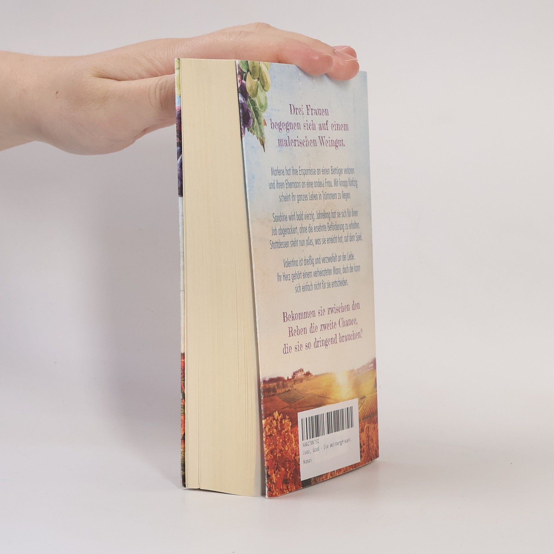 Marlene hat ihre Ersparnisse an einen Betrüger verloren und ihren Ehemann an eine andere Frau. Mit knapp fünfzig scheint ihr ganzes Leben in Trümmern zu liegen. Sandrine wird bald vierzig. Jahrelang hat sie sich für ihren Job abgerackert, ohne die ersehnte Beförderung zu erhalten. Stattdessen steht nun alles, was sie erreicht hat, auf dem Spiel. Valentina ist dreißig und verzweifelt an der Liebe. Ihr Herz gehört einem verheirateten Mann, doch der kann sich einfach nicht für sie entscheiden. Auf einem Weingut im Süden von Deutschland begegnen sich die drei Frauen. Jede einzelne von ihnen braucht dringend eine zweite Chance. Doch die braucht der Winzer Hermann auch. Sein Gut steht kurz vor dem Konkurs. Wenn sie das Weingut retten wollen, müssen sich die drei unterschiedlichen Frauen zusammenraufen.