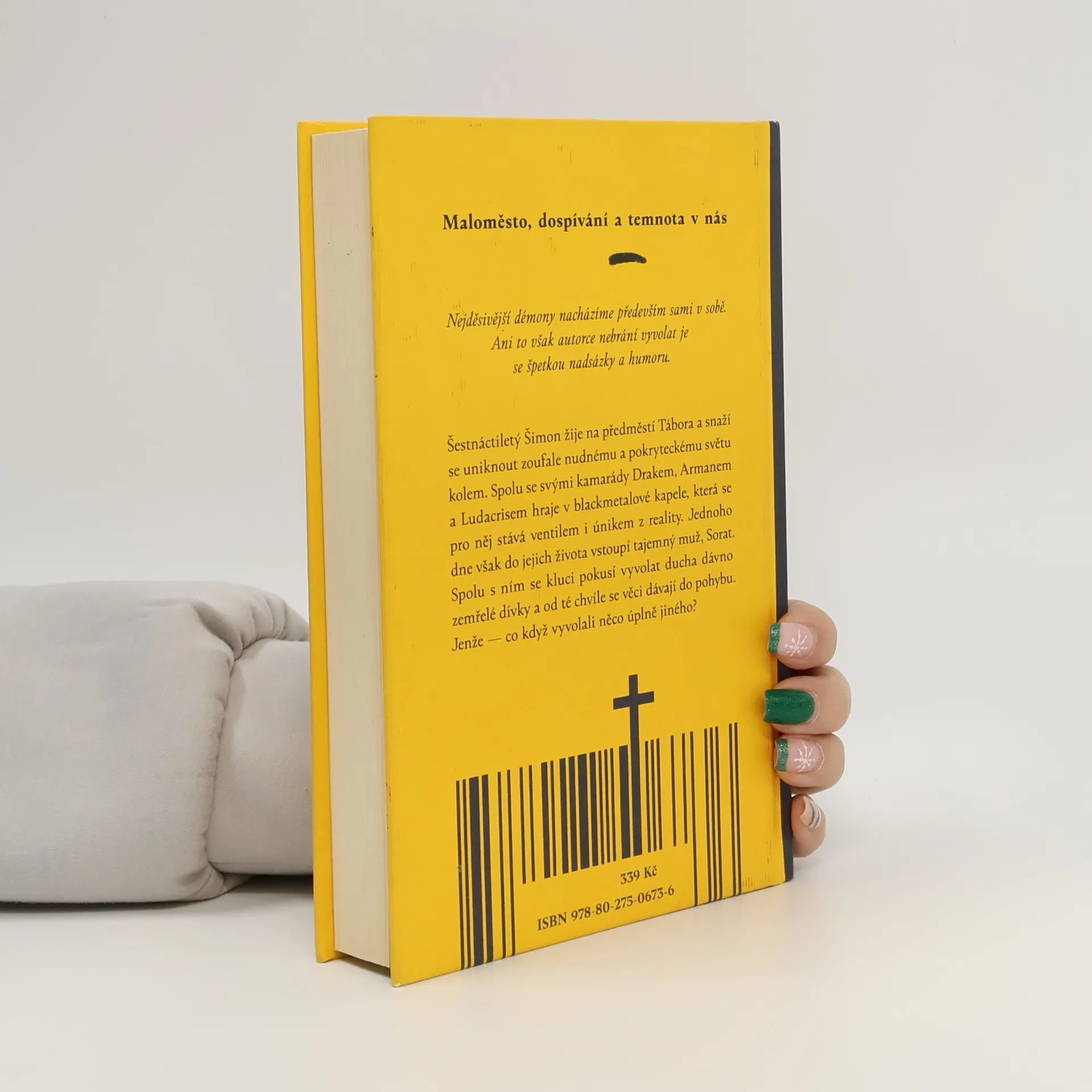 Maloměsto, dospívání a temnota v nás. Šestnáctiletý Šimon žije na předměstí Tábora a snaží se uniknout zoufale nudnému a pokryteckému světu kolem. Spolu se svými kamarády Drakem, Armanem a Ludacrisem hraje v blackmetalové kapele, která se pro něj stává ventilem i únikem z reality. Jednoho dne však do jejich života vstoupí tajemný muž, Sorat. Spolu s ním se kluci pokusí vyvolat ducha dávno zemřelé dívky a od té chvíle se věci dávají do pohybu. Jenže — co když vyvolali něco úplně jiného? Nejděsivější démony nacházíme především sami v sobě. Ani to však autorce nebrání vyvolat je se špetkou nadsázky a humoru.
