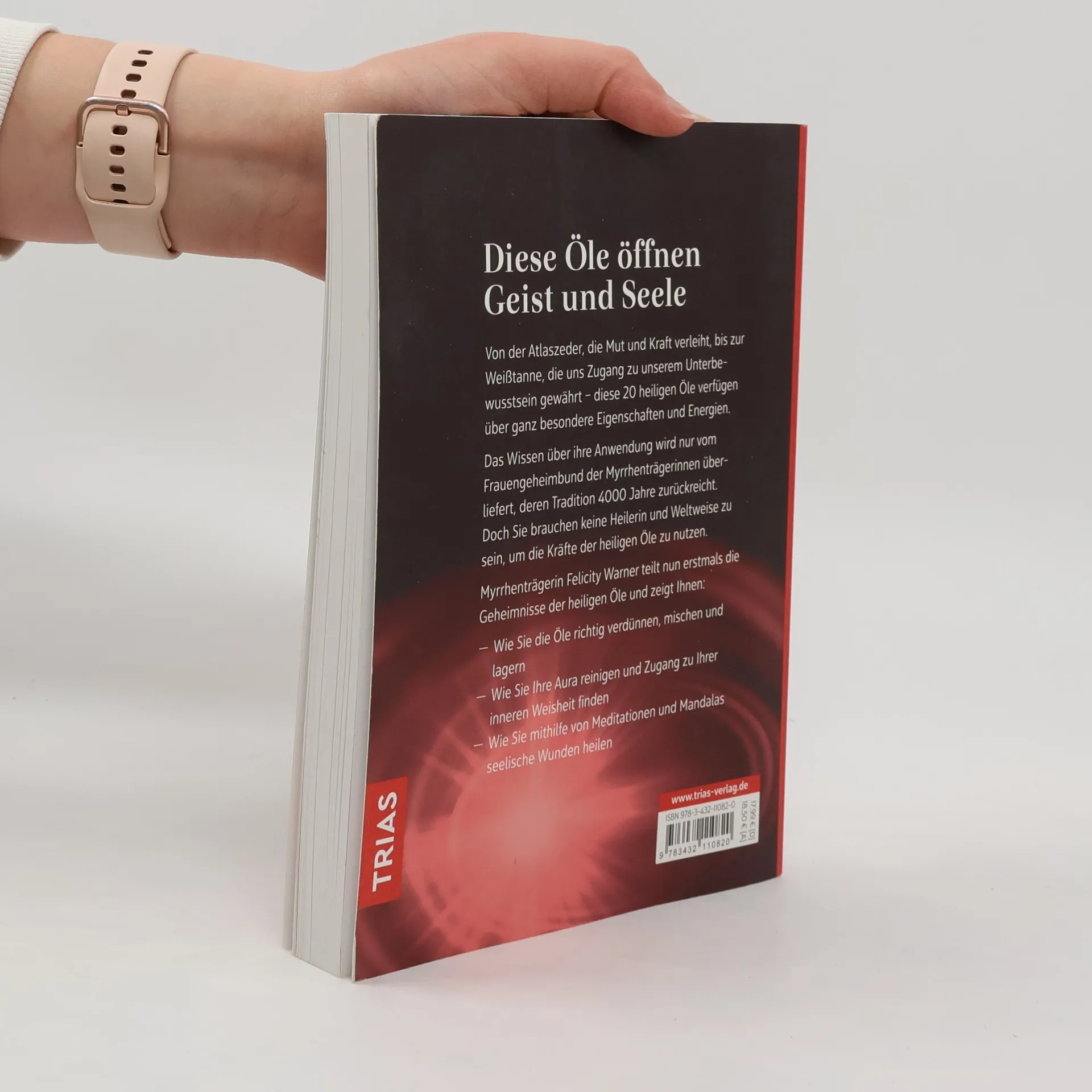 Diese Öle öffnen Geist und Seele Von der Atlaszeder, die Mut und Kraft verleiht, bis zur Weißtanne, die uns Zugang zu unserem Unterbewusstsein gewährt – diese 20 heiligen Öle verfügen über ganz besondere Eigenschaften und Energien. Das Wissen über ihre Anwendung wird nur vom Frauengeheimbund der Myrrhenträgerinnen überliefert, deren Tradition 4000 Jahre zurückreicht. Doch Sie brauchen keine Heilerin und Weltweise zu sein, um die Kräfte der heiligen Öle zu nutzen. Myrrhenträgerin Felicity Warner teilt nun erstmals die Geheimnisse der heiligen Öle und zeigt Ihnen: Wie Sie die Öle richtig verdünnen, mischen und lagern Wie Sie Ihre Aura reinigen und Zugang zu Ihrer inneren Weisheit finden Wie Sie mithilfe von Meditationen und Mandalas seelische Wunden heilen