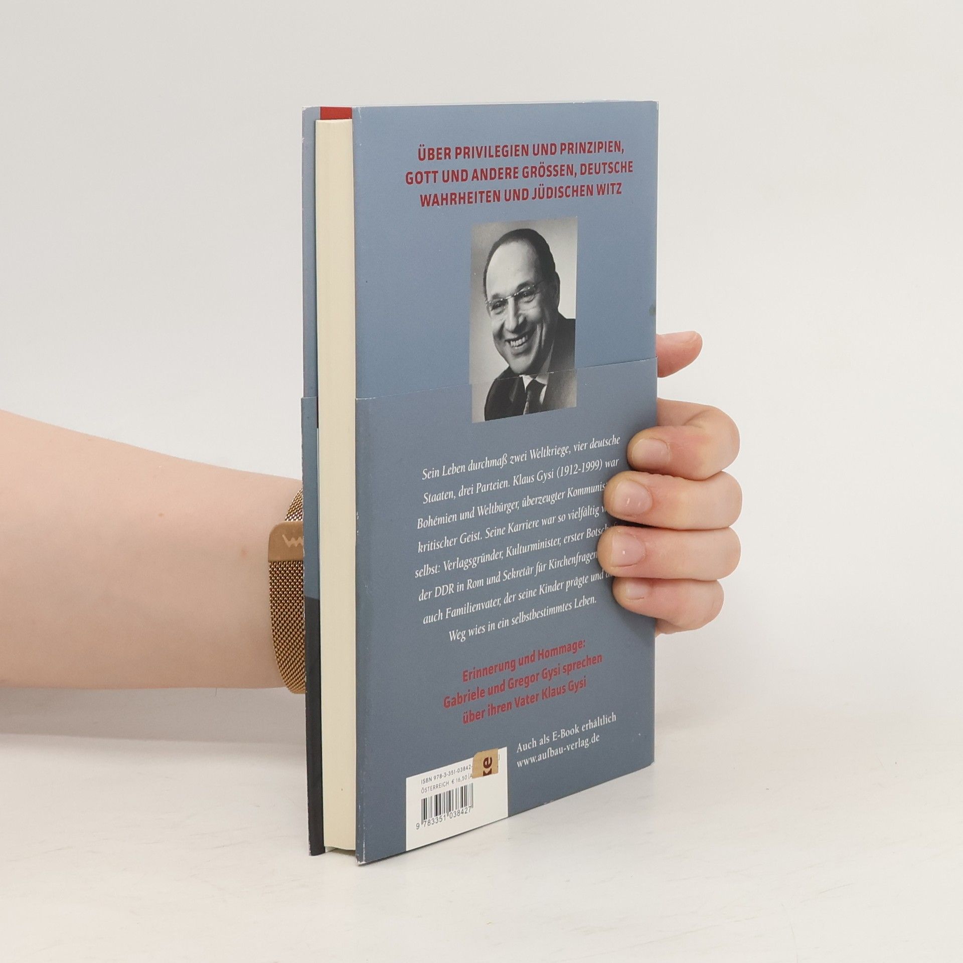 Über Privilegien und Prinzipien, Gott und andere Größen, deutsche Wahrheiten und jüdischen Witz – Gregor und Gabriele Gysi sprechen über ihren Vater Klaus Gysi Klaus Gysis Leben ist geprägt von den Extremen des 20. Jahrhunderts: 1912 als Berliner Arztsohn in bürgerliche Verhältnisse geboren, wird er in jungen Jahren zum überzeugten Kommunisten und muss während der Nazizeit wegen seiner Überzeugungen, aber auch als Jude um sein Leben fürchten. Er sieht die DDR als große Chance und wird zeitlebens an ihren politischen Widersprüchen leiden: als Mitbegründer des Aufbau Verlages und späterer Verlagsleiter, Kulturminister, als Botschafter in Italien und Staatssekretär für Kirchenfragen. Funktionär - und Feingeist. Genosse - und Lebemann.Vor allem aber auch: Vater. Seine Tochter, die Schauspielerin Gabriele Gysi, und sein Sohn, der Politiker Gregor Gysi, zeichnen ein vielschichtiges Bild ihres Vaters.