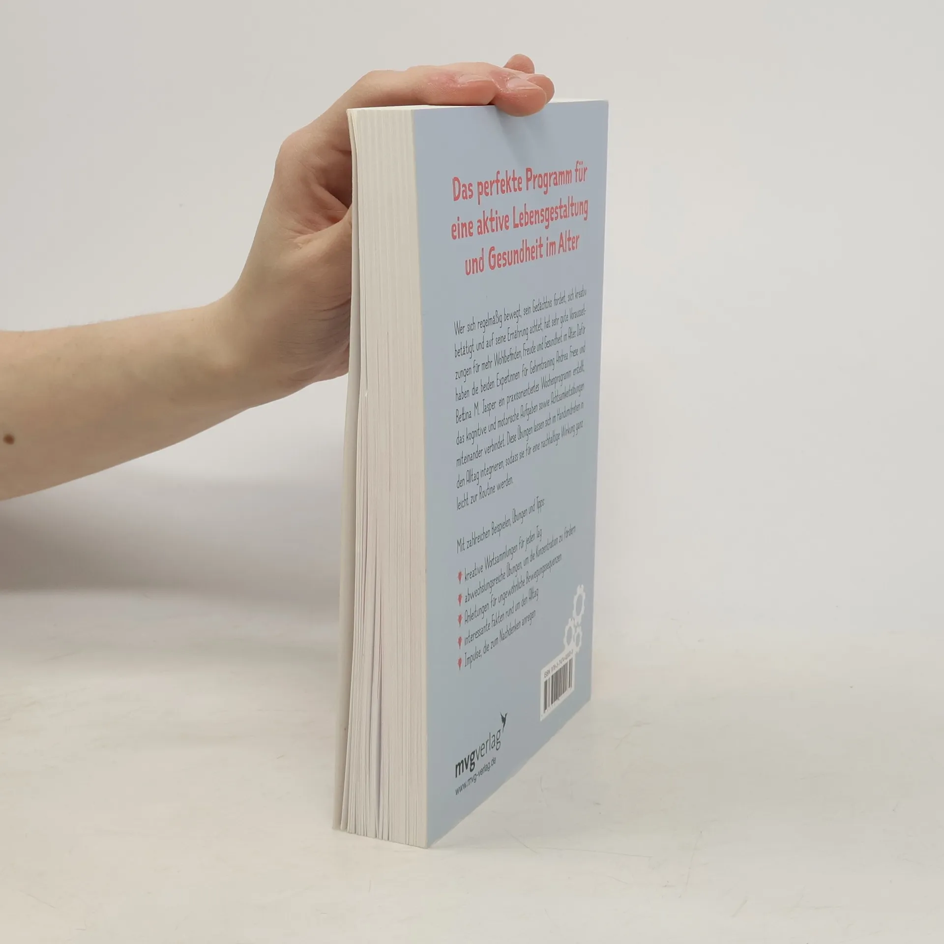Wer sich regelmäßig bewegt, sein Gedächtnis fordert, sich kreativ betätigt und auf seine Ernährung achtet, hat sehr gute Voraussetzungen für mehr Wohlbefinden, Freude und Gesundheit im Alter. Dafür haben die beiden Expertinnen für Gehirntraining Andrea Friese und Bettina M. Jasper ein praxisorientiertes Wochenprogramm erstellt, das kognitive und motorische Aufgaben sowie Achtsamkeitsübungen miteinander verbindet. Diese Übungen lassen sich im Handumdrehen in den Alltag integrieren, sodass sie für eine nachhaltige Wirkung ganz leicht zur Routine werden. Mit zahlreichen Beispielen, Übungen und Tipps: •kreative Wortsammlungen für jeden Tag •abwechslungsreiche Übungen, um die Konzentration zu fördern •Anleitungen für ungewöhnliche Bewegungssequenzen •interessante Fakten rund um den Alltag •Impulse, die zum Nachdenken anregen Das perfekte Programm für eine aktive Lebensgestaltung und Gesundheit im Alter