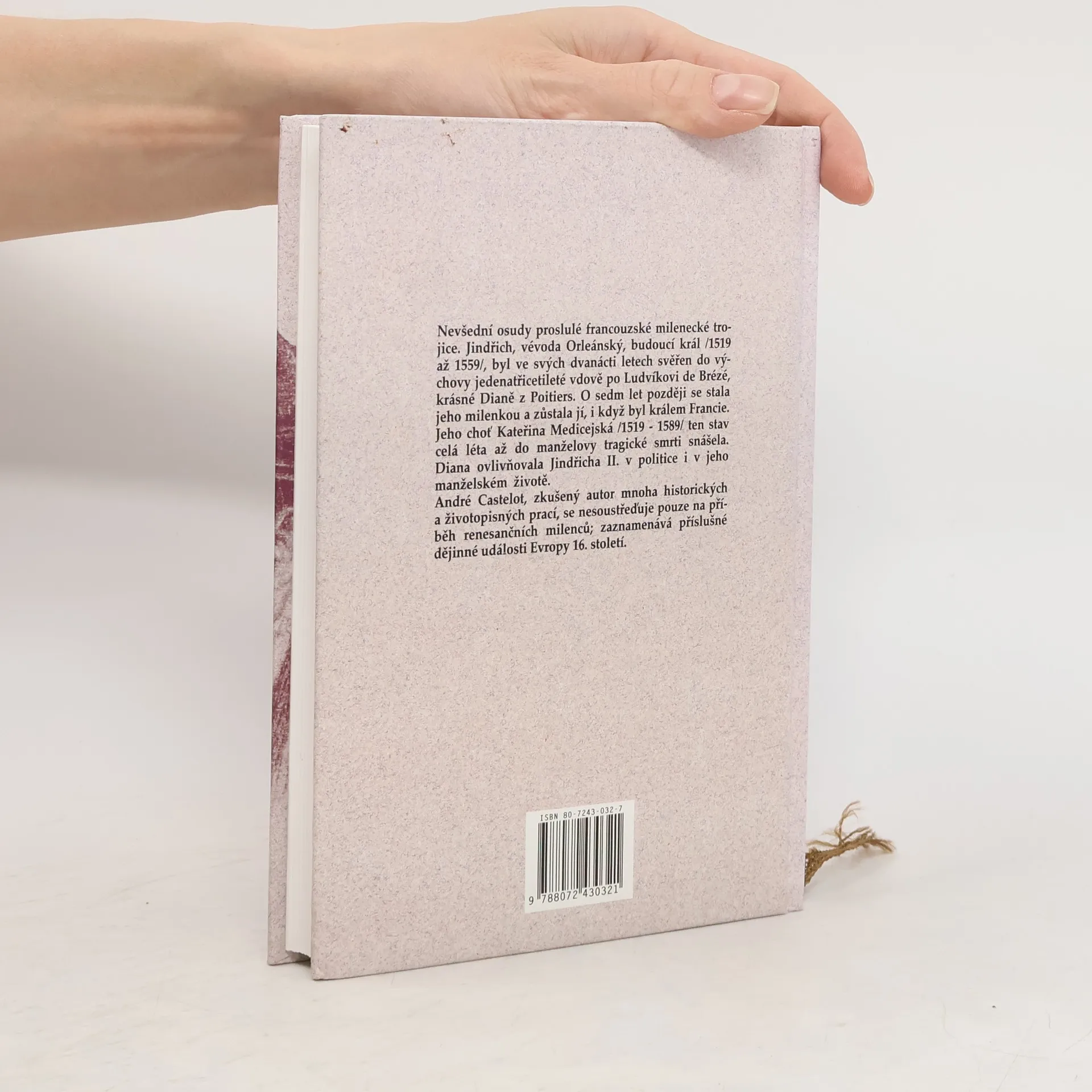 Nevšední osudy proslulé francouzské milenecké trojice Jindřicha, vévody Orleánského (1519 - 1559), jeho milenky krásné Diany z Poitiers (1500 - 1566) a manželky Kateřiny Medičejské (1519 - 1589) Téměř románový příběh opětované i neopětované lásky, vášně a rytířské smrti zpracovaný odpovídající, spíše beletristickou, formou Vzájemně propletené životní osudy francouzského krále Jindřicha II., jeho ženy Kateřiny Medicejské a legendární Diany z Poitiers.